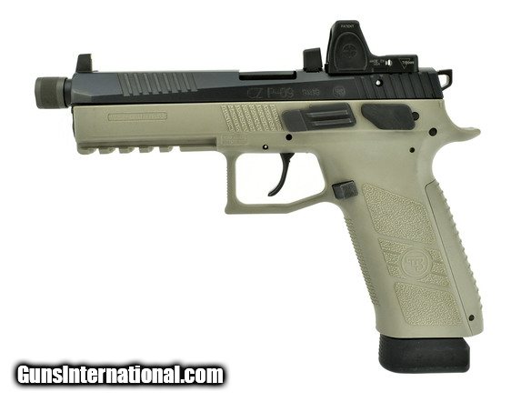 CZ P-09 9mm caliber pistol. Tactical model with threaded barrel, tall sights and Trijicon RMR. Excellent condition with box.