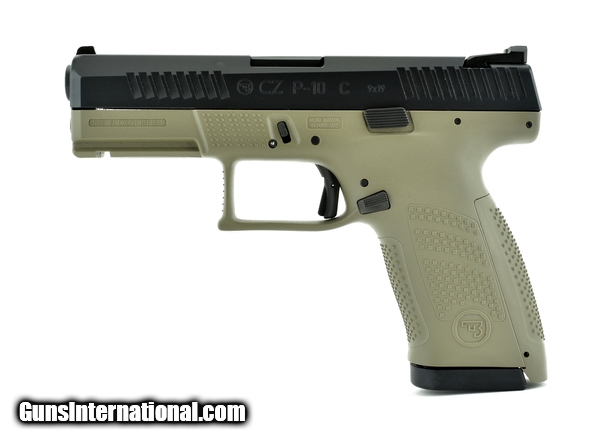 Description: CZ P-10C 9mm caliber pistol. Compact model with tan frame. Excellent condition with box and magazine.