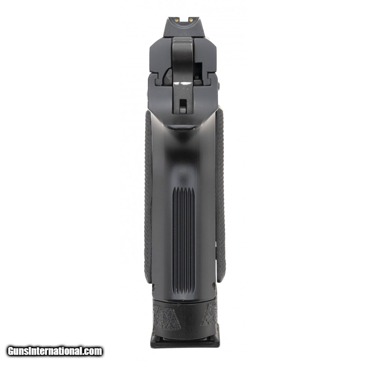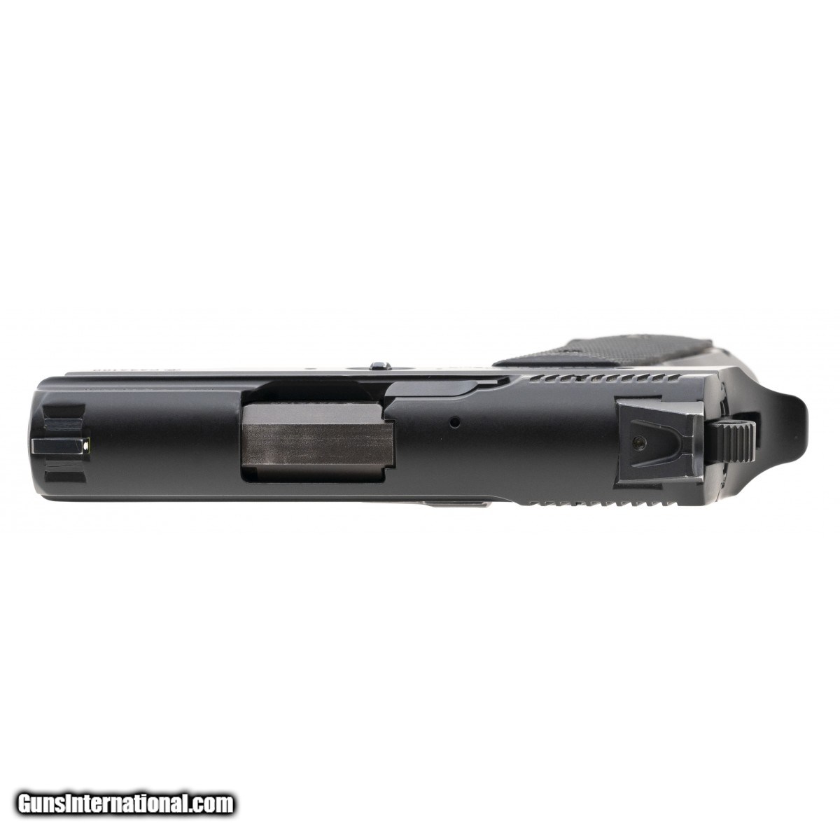 Description: " SN:C434100. Discontinued and desirable double action metal framed compact pistol with a manual safety and inverted slide rail design. In excellent condition. Comes in box with a spare flush 10RD magazine. SOLD |
