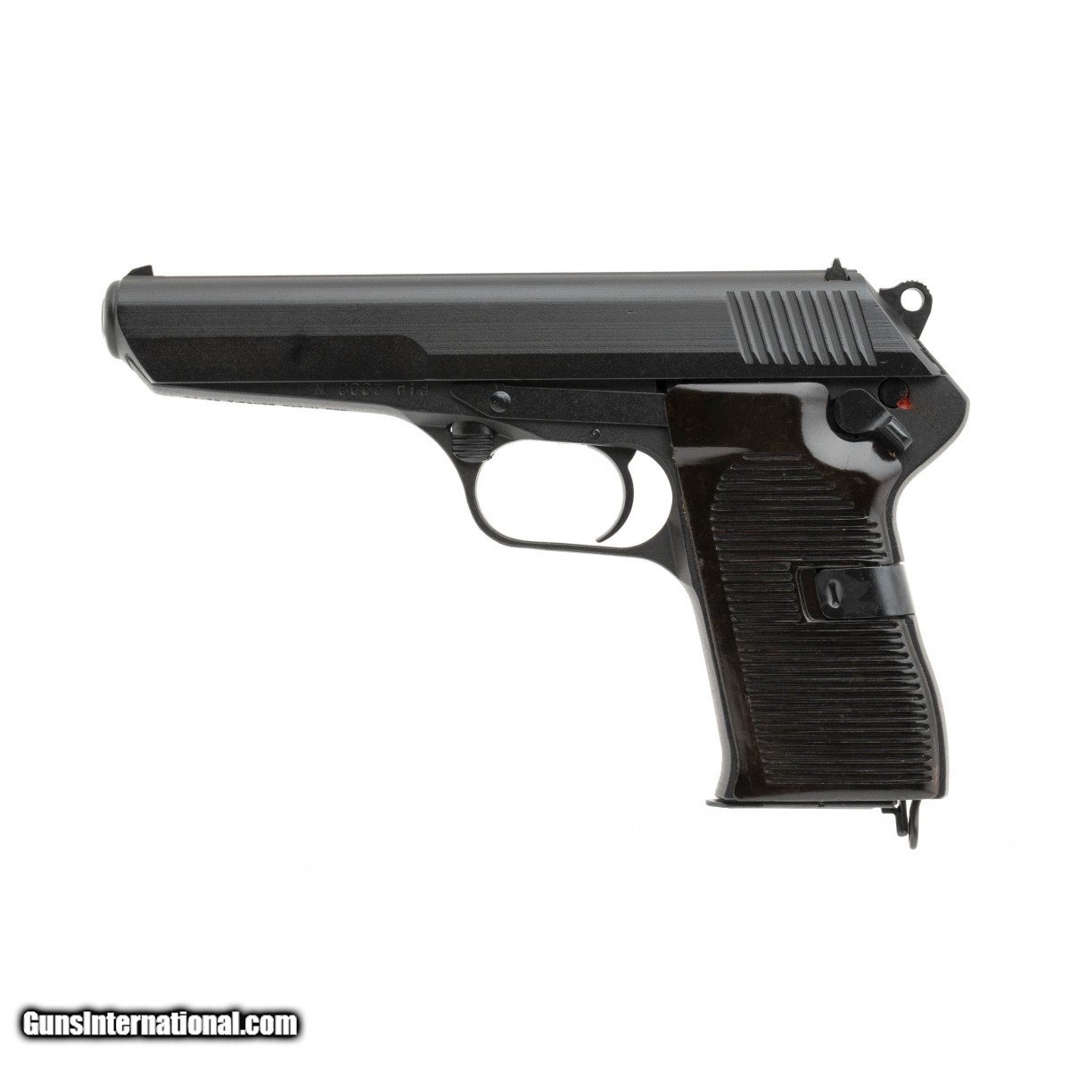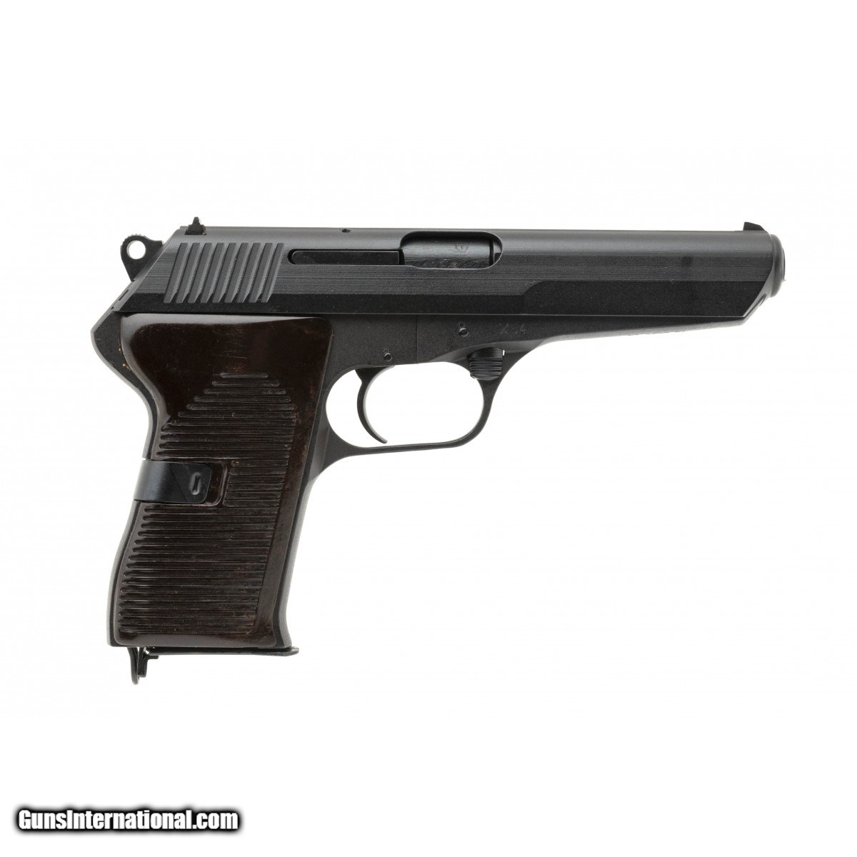 Description: " SN:N8663. Hammer-fired cold war era roller locked pistol with a manual safety & a lanyard loop with polymer grips. In excellent condition. SOLD |