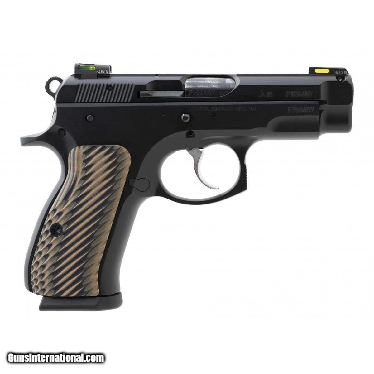 Description: " SN:F156457. Carry size compact model with safety. DA/SA with black finish and custom G10 grips. In excellent condition. With box, cleaning kit, and spare 15RD magazine. SOLD |