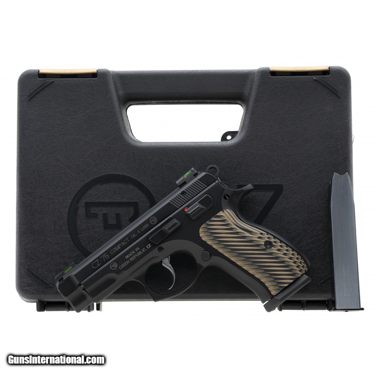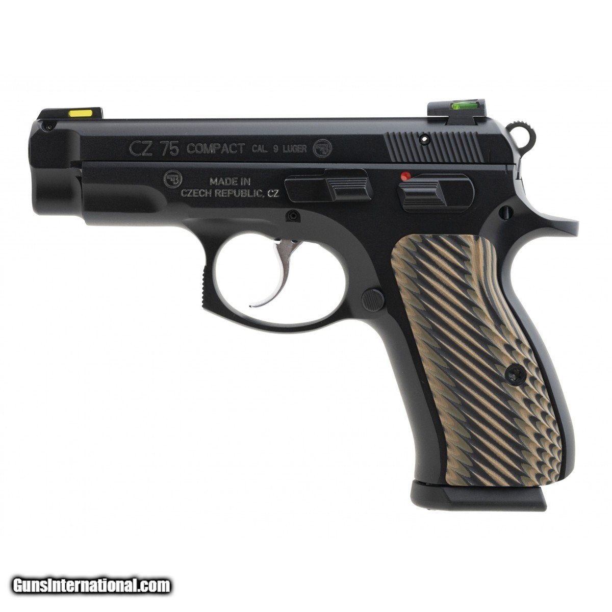 SN:F156457. Carry size compact model with safety. DA/SA with black finish and custom G10 grips. In excellent condition. With box, cleaning kit, and spare 15RD magazine.