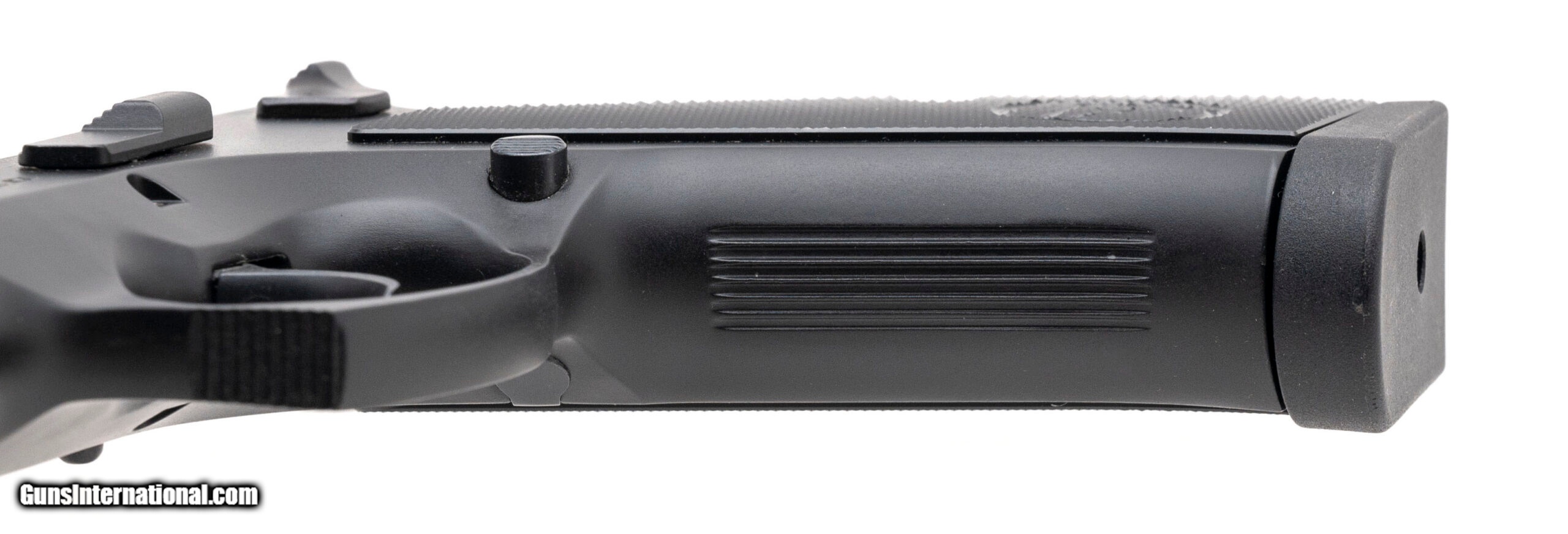 Description: "SN: F328094. Modern production, .45 ACP with a 4.5"" barrel. Bore is bright with strong rifling. Full size steel frame double action pistol w/ decocker. Black finish and metal grips are in excellent condition. Comes with case and extra magazine. SOLD |