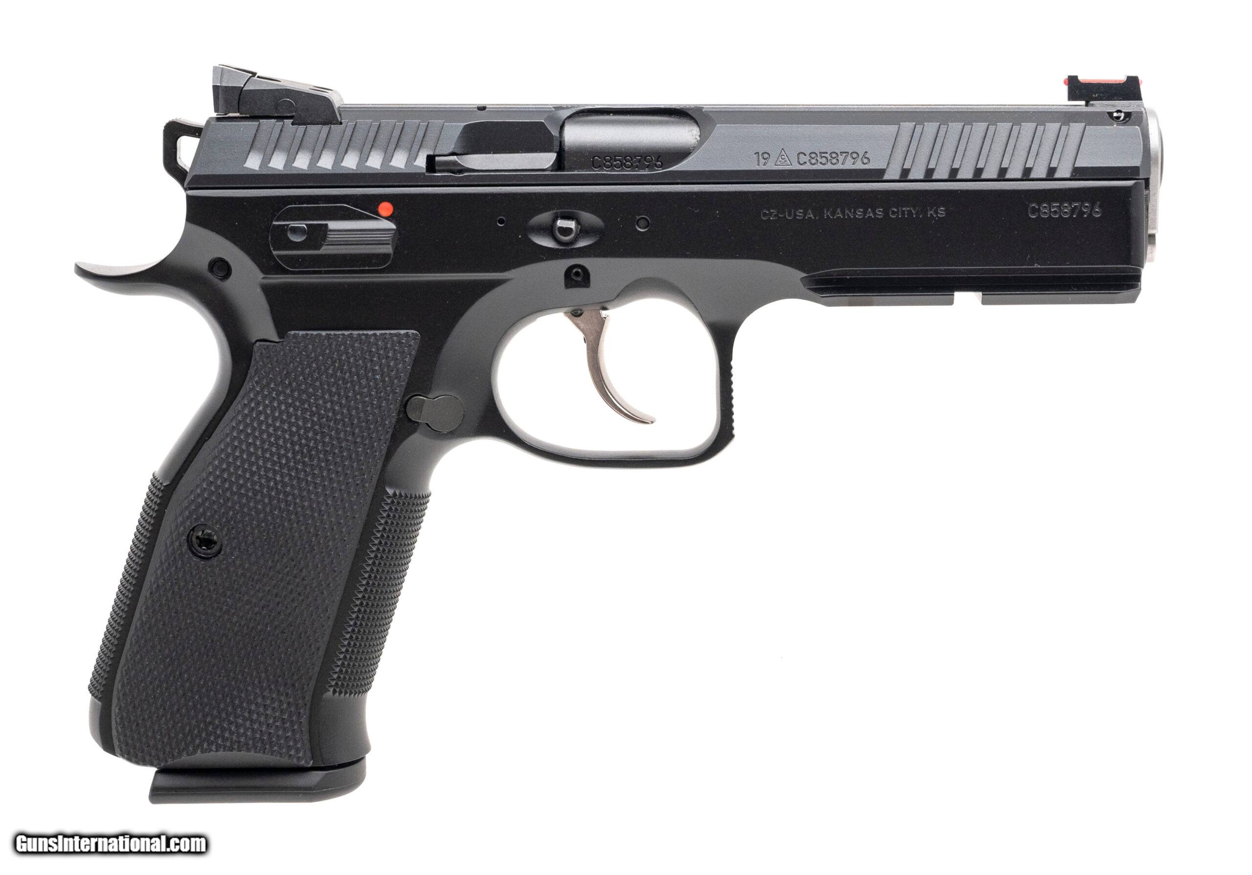 Description: "SN: C858796. Modern production, 9mm with a 4.89"" barrel. Bore is excellent. CZ Custom Shop tuned alloy frame double-action pistol with a fiber-optic front sight, adjustable rear sight, ambidextrous manual thumb-safety, accessory rail, black nitride finish, and and checkered polymer grips. Overall condition is excellent. Includes original grips, and original case. Price: $2,000.00 Contact Seller |
