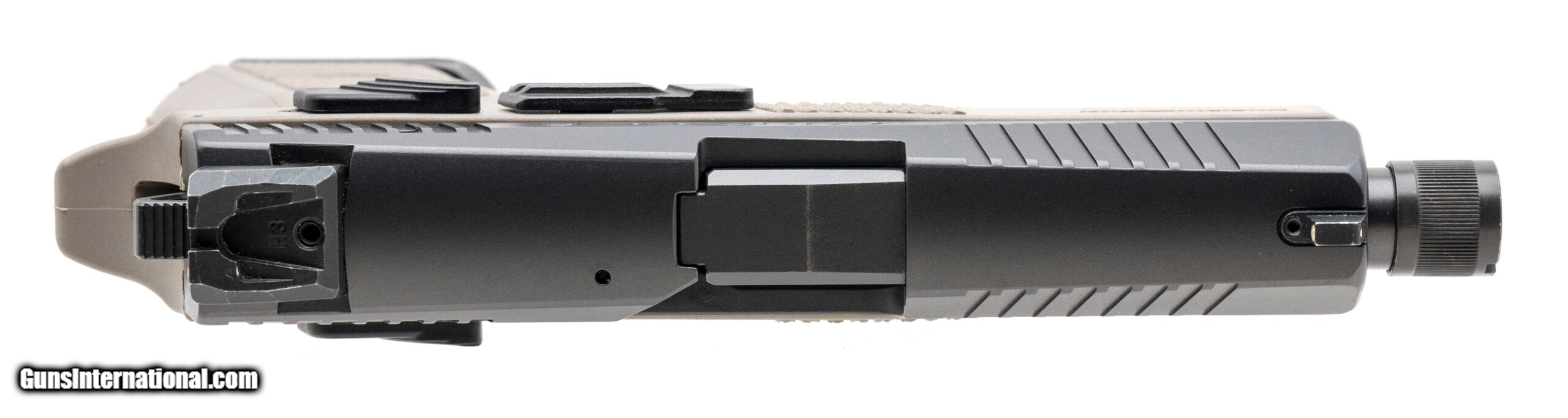 Description: "SN: C67083. Modern production, 9mm with a 4.36" threaded barrel. Bore is bright with strong rifling. Full size double action pistol with suppressor height night sights and upgraded Tungsten guide rod & decocker controls. Nitride finish and polymer frame are in very good condition with minor wear on the slide release and sights. Overall condition is very good. Comes with case, original guide rod & decocker controls, and extra magazines. SOLD |