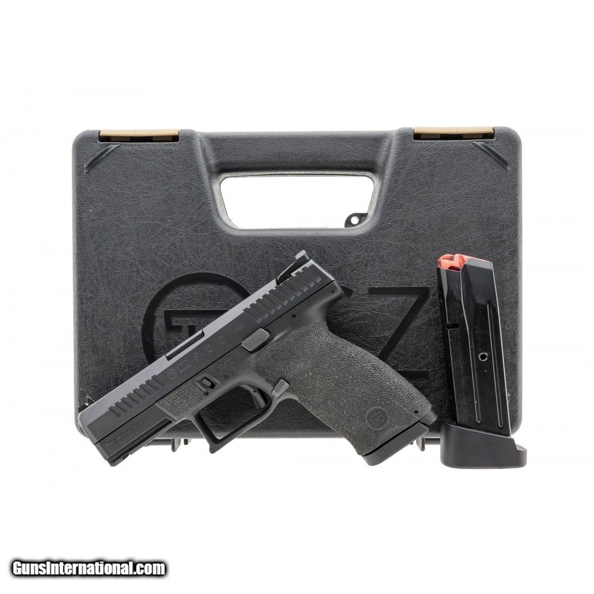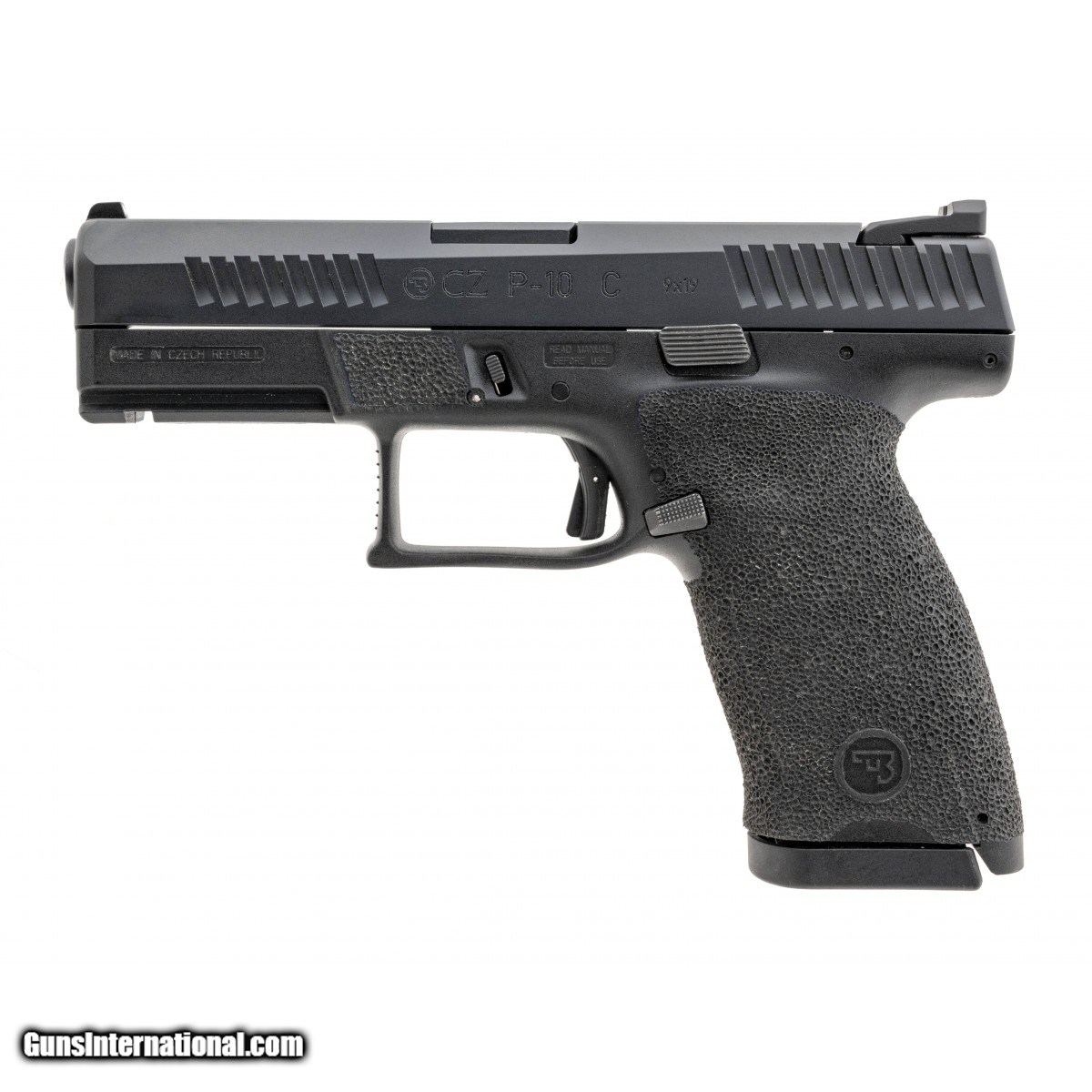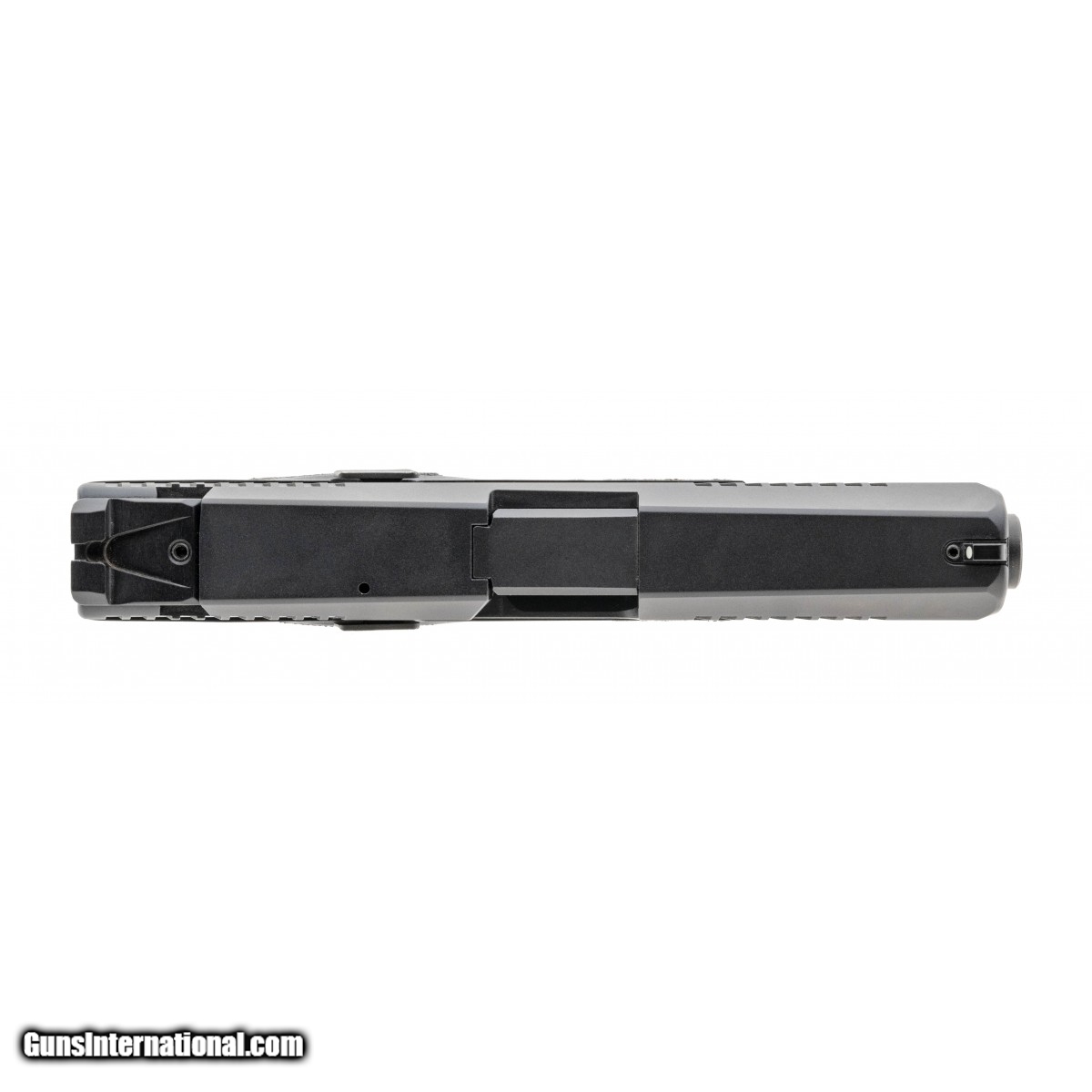 Description: " SN:C442340. Semi-automatic striker-fired 4.1"" pistol with 3-dot iron sights, custom-stippled frame & drilled out 10RD magazines for 15RD capacity. In excellent condition. In box with a spare 17RD Hyve extended mag. SOLD |