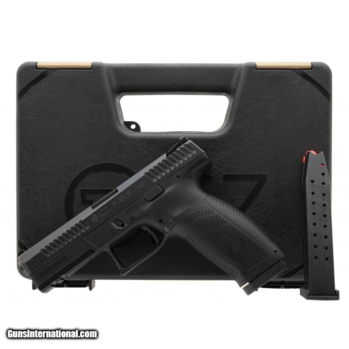 CZ P-10 F 9mm caliber pistol. Full-size model with a 4.5"" barrel, 2 magazines and black finish. NEW. UPC:806703915401.