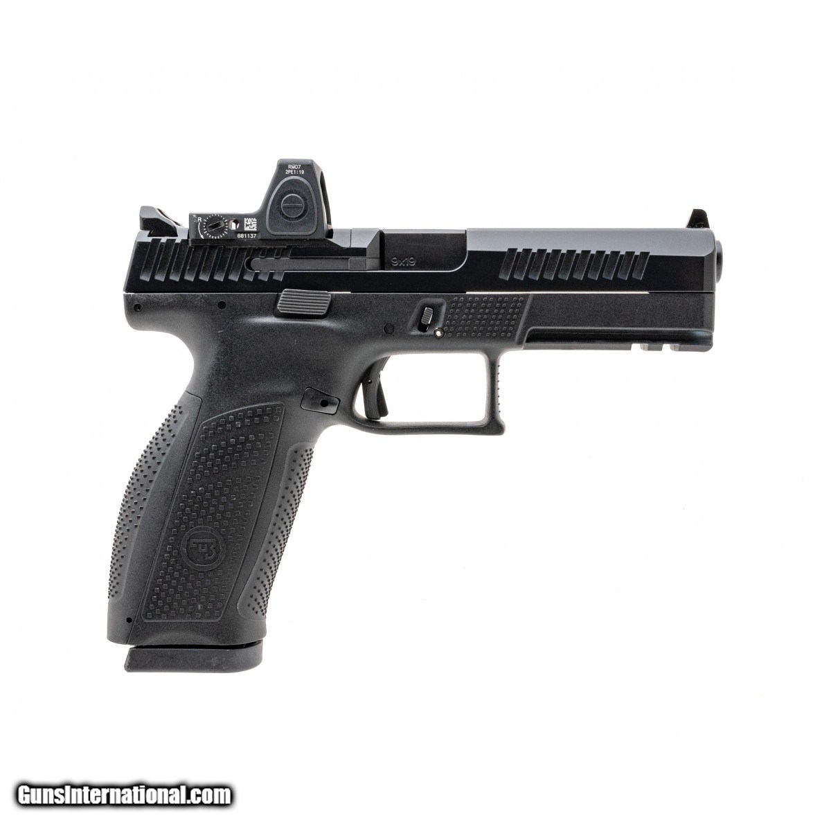 Description: " SN:UB03987. Modern production. 9mm with a 4.5"" barrel. Bore is excellent. Full size Stricker fired polymer handgun. Metal is in excellent condition. grips are excellent. Has trijicon RM07 Red dot. Overall condition is excellent. SOLD |