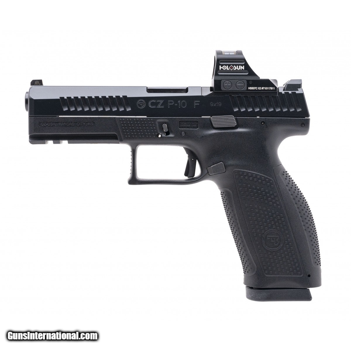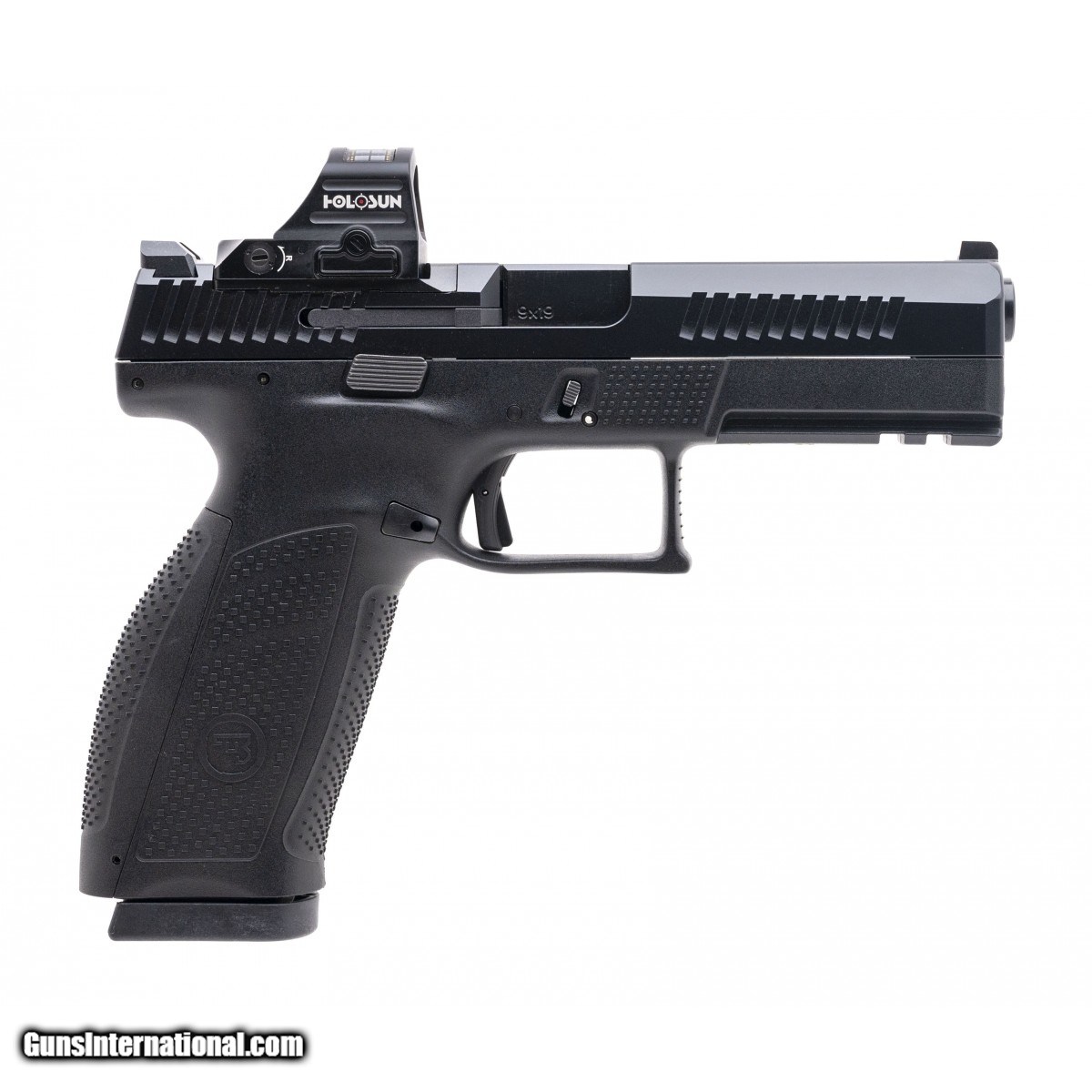 SN: UB03502. Modern production. 9mm with a 4.5"" barrel. Bore is in excellent condition. CZ semi-automatic striker fired polymer frame pistol. Finish and grips are in excellent condition. Overall condition is excellent. Comes with Holosun red dot sight.