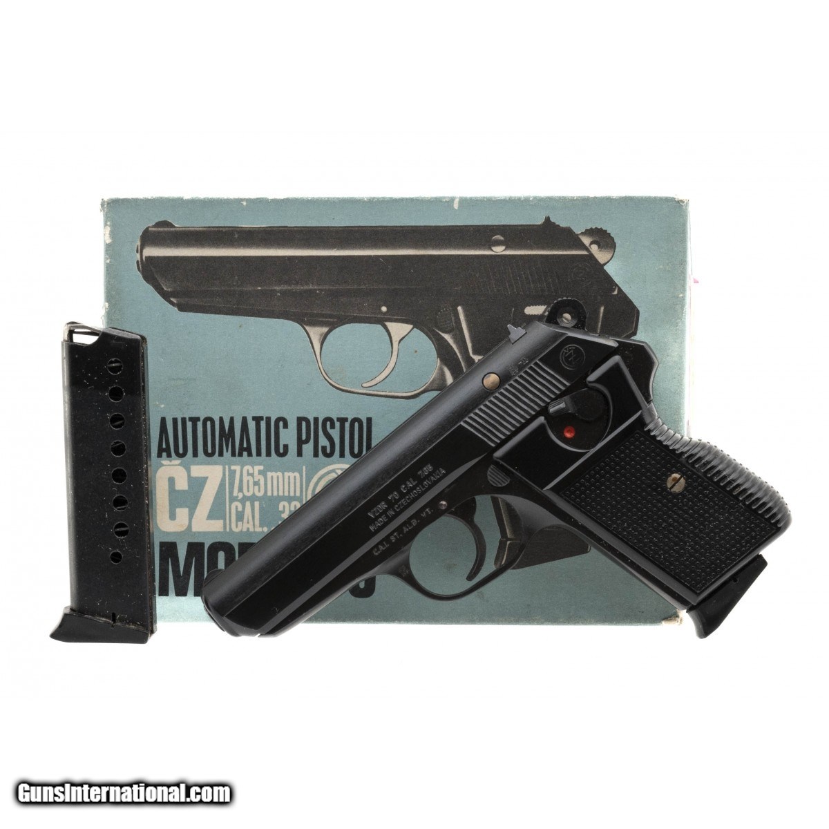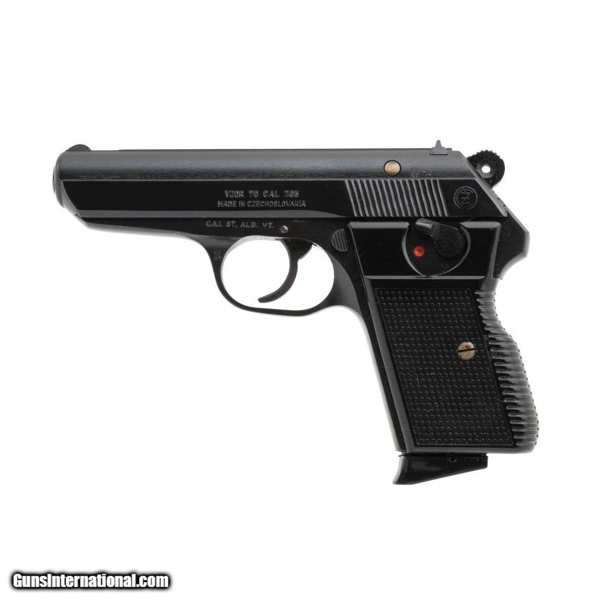 Description: " SN: 202806. 1970's production, .7.65mm, 3.75"" barrel. Czech small service pistol in excellent condition with box and extra mag. SOLD |