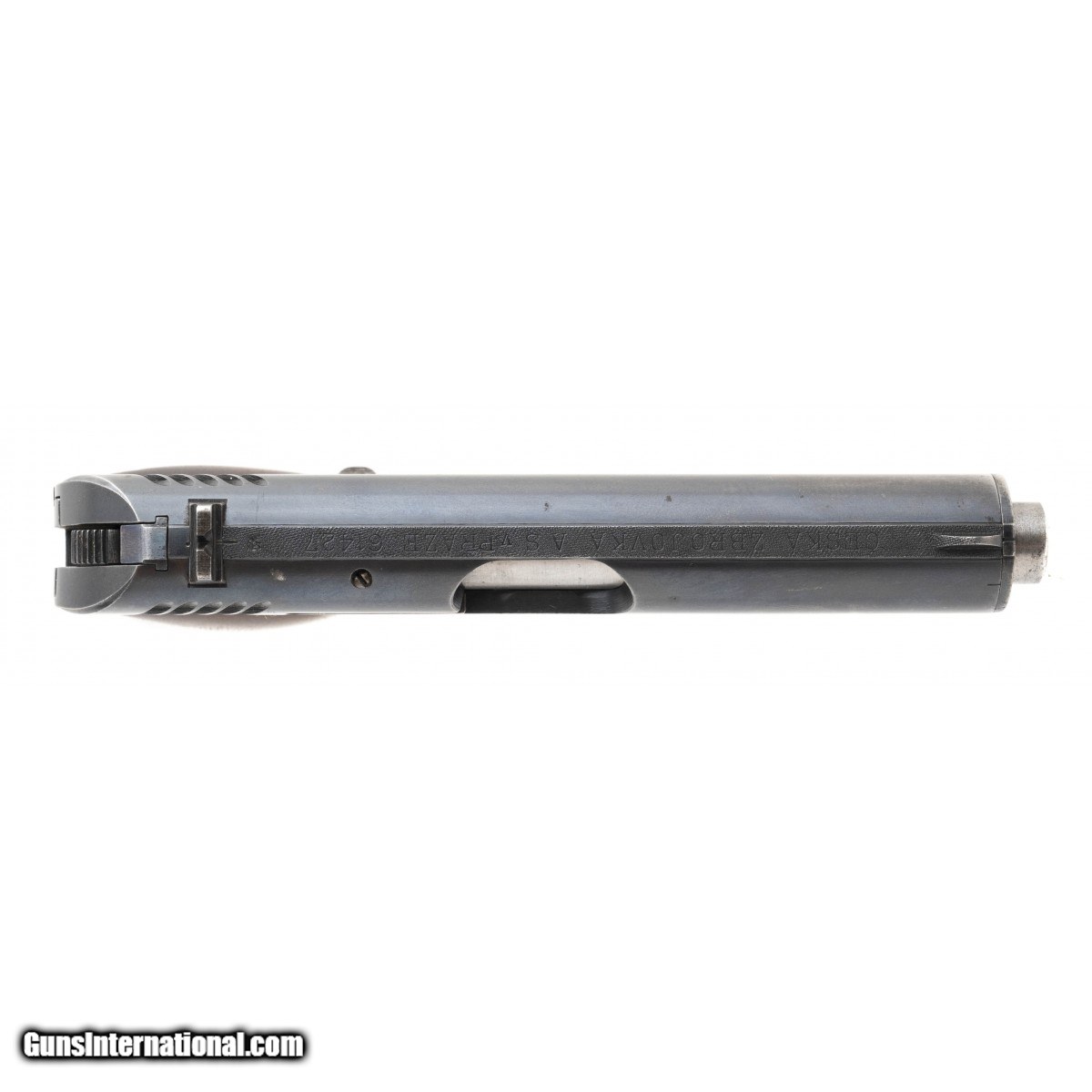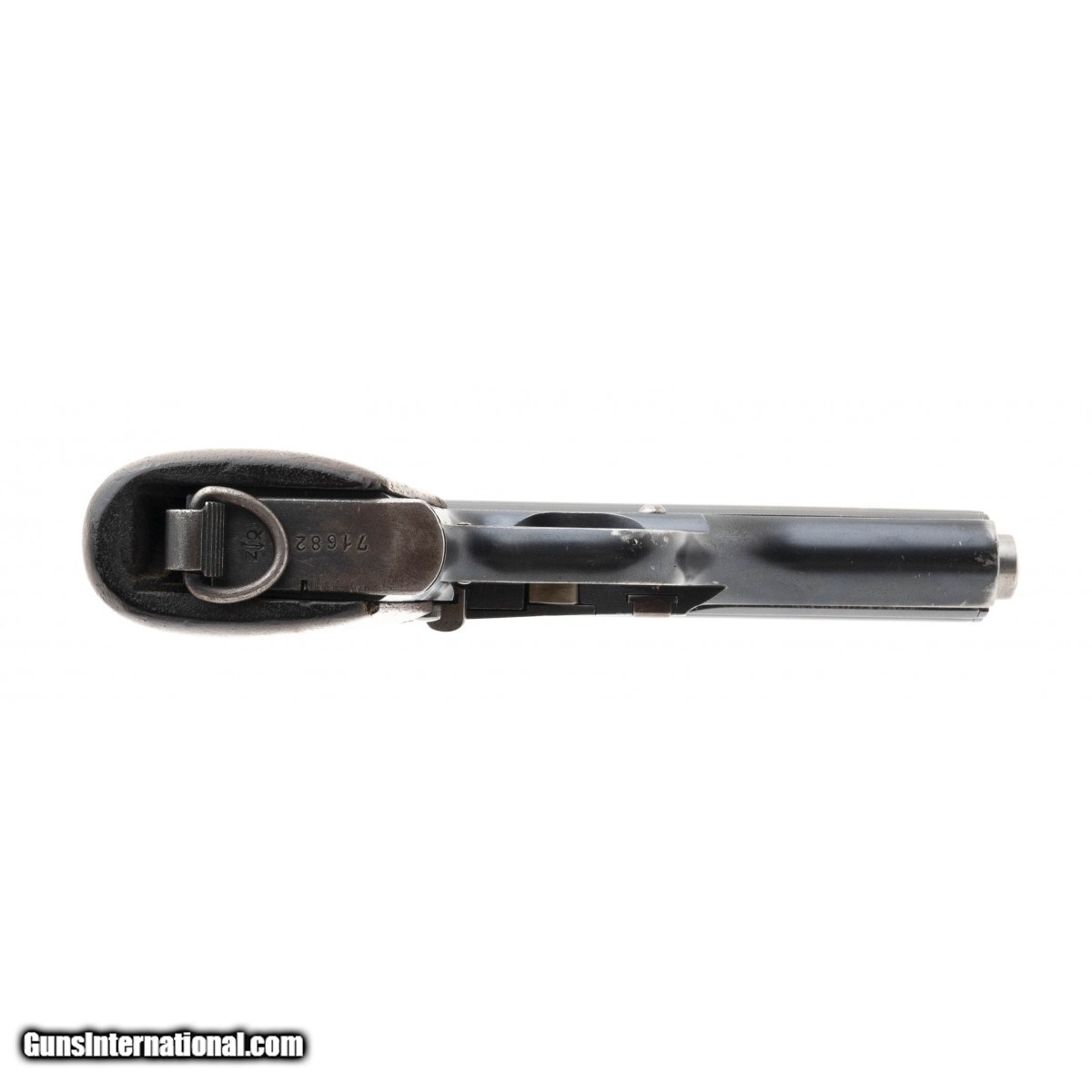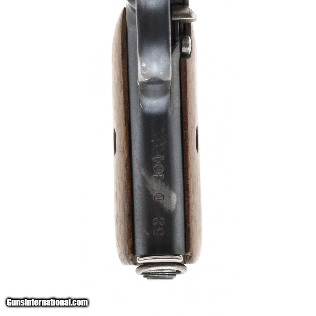 Description: " The 7,65mm (32 ACP) CZ 27 was manufactured from 1927 to 1951. About 450.000 were manufactured for the German military during WWII. This pistol is a pre-WWII CZ 27 that was used by the Czech military prior to WWII. It is slightly diffferent from the WWII German issued pistols in that it is rounded rather than flat on the later guns. The 3.5"" barrel has an excellent bore with bright, strong rifling. The gun retains approx 92% blue overall with light wear areas. The top of the slide is marked CESKA ZBROJOVKA v PRAZE 61427 followed by the Czech lion inspection mark. The left side of the frame has CZ with a vertical arrow intersecting it followed by 61427. This is repeated on the left rear of the slide.The right side of the frame above the grip has a J Czech lion 27. The front grip strap is unit marked 52 D 404. The smooth wrap-around wood grips are excellent with no chips or cracks. The magazine base has the CZ with the arrow and is numbered to another gun. The lanyard loop is present. The action functions correctly. The black leather holster, with a spare CZ 27 magazine, is excellent with tight stitching. It is marked on the interior flap with a boxed A over SN7, the Czech lion followed by 1936 followed by 6412, and with, below that, PUV2 A. This is a great pre-WWII Czech military CZ27 pistol rig. SOLD Curio/Relic: Yes |