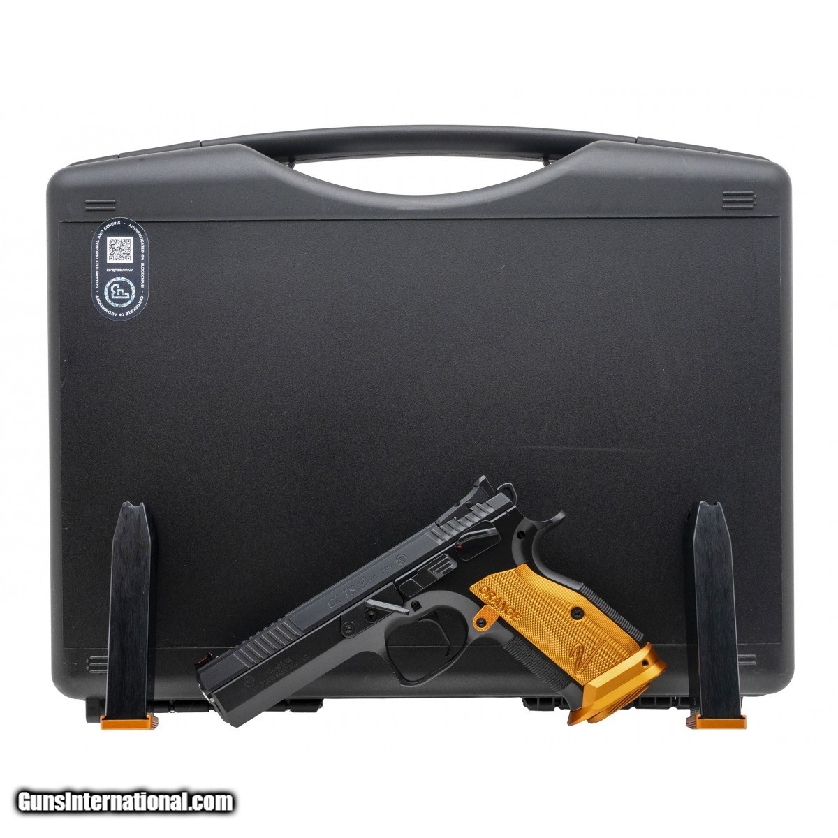 Description: " CZ 75 Tactical Sport 2 Orange Pistol. .40 S&W with a 5.2"" barrel. Single action only steel frame pistol with aluminum diamond grips, Polycoat finish, and fiber optic front sight. New. UPC: 806703912653 (STOCK PHOTO) SOLD |