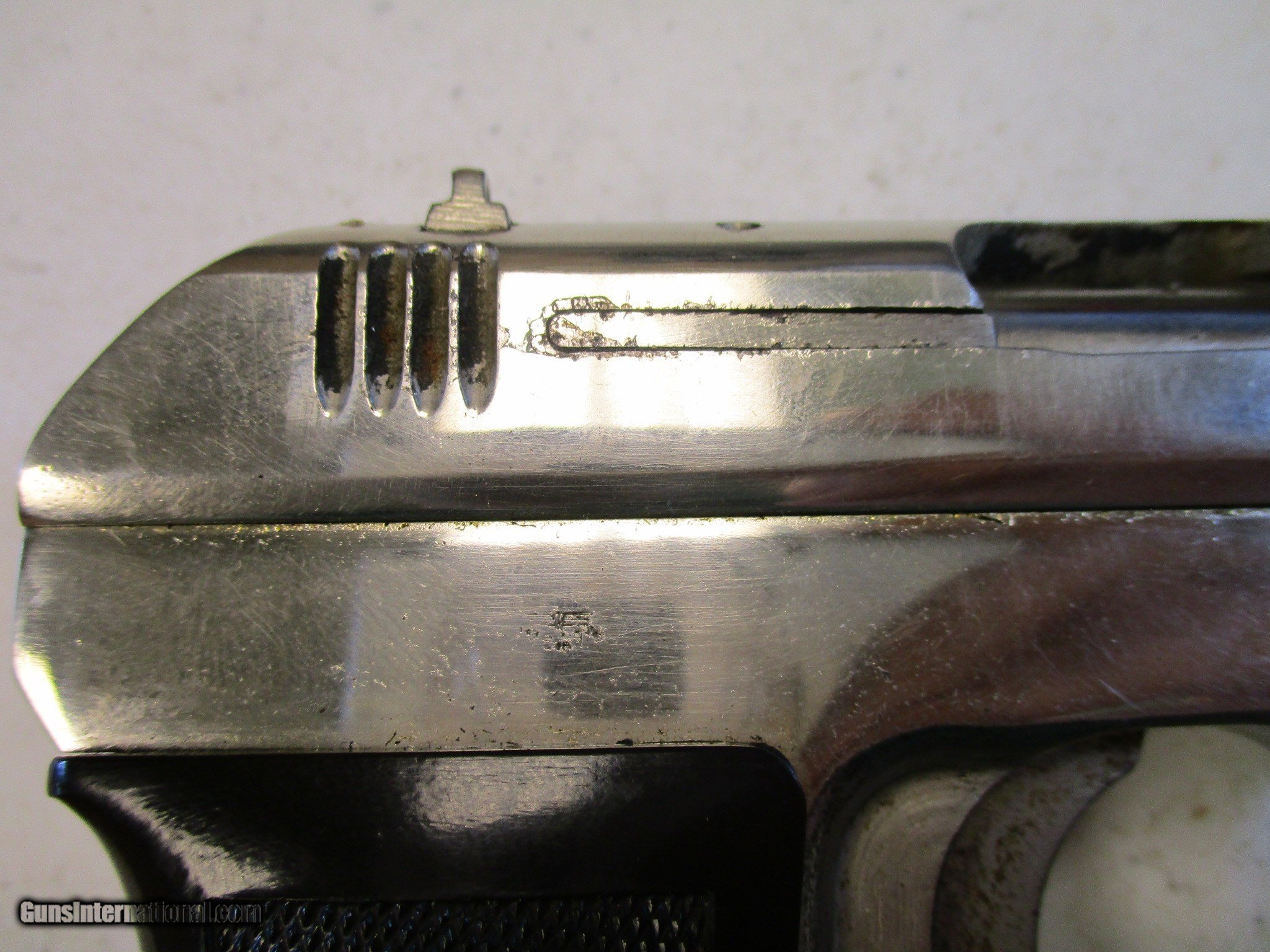 Description: CZ model 1927, made in WW2, Nazi proof marked. SN is 104965, comes with two mags and the holster as shown. Holster is also Nazi marked and serial numbered to the pistol! Nickel finish, and both mags are also nickel. Nice gun! Email me if you would like these pics sent to you, they will come through bigger and better than on the listing page here. Email me with any questions. I am a store front dealer, and I will close s if the gun sells locally. Once ahas reached my reserve, I will pull it from my shelves. Please check your local laws to confirm it is legal to own in your state! Buyer pays $25 shipping and insurance to your FFL, in the lower 48. AK, HI or PR is extra. I will ship to California, NO PROBLEM! All my guns come with a non firing, 3 day unconditional return privilege, from the day UPS delivers to your dealer. Buyer pays shipping both ways if the gun comes back. I can add a new hard case by PLANO for secure shipping for $25 if the buyer wishes (highly recommended, cheap insurance, really helps keep the UPS monster from eating my guns!). No sales tax on guns ship out of Kansas, guns sold in Kansas are subject to Kansas sales tax. I am a licensed FFL, and will include a copy of my FFL with the gun for your dealers records. I will ship to a C&R if the gun is eligible (you look it up!). I will ship to California, but you need to confirm the gun is legal where you are, California or other. . WE ALSO TRADE FOR CLASSIC CARS AND TRUCKS! I will leave feedback as soon as the buyer leaves feedback on me. Email me with any questions, and good luck! SOLD |