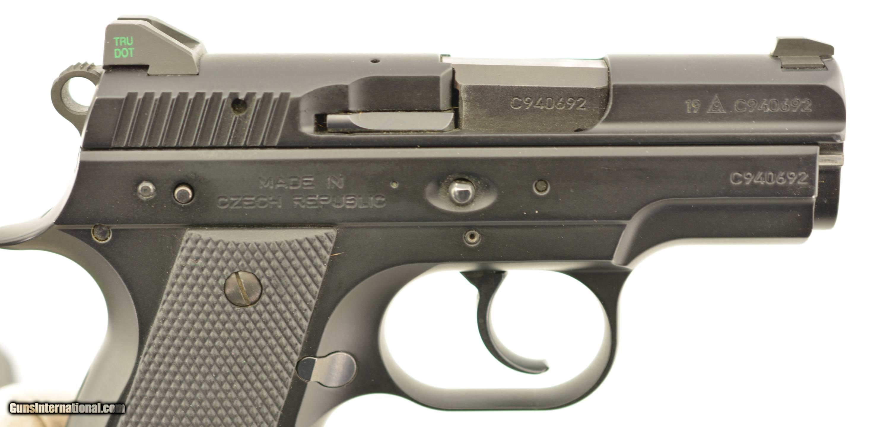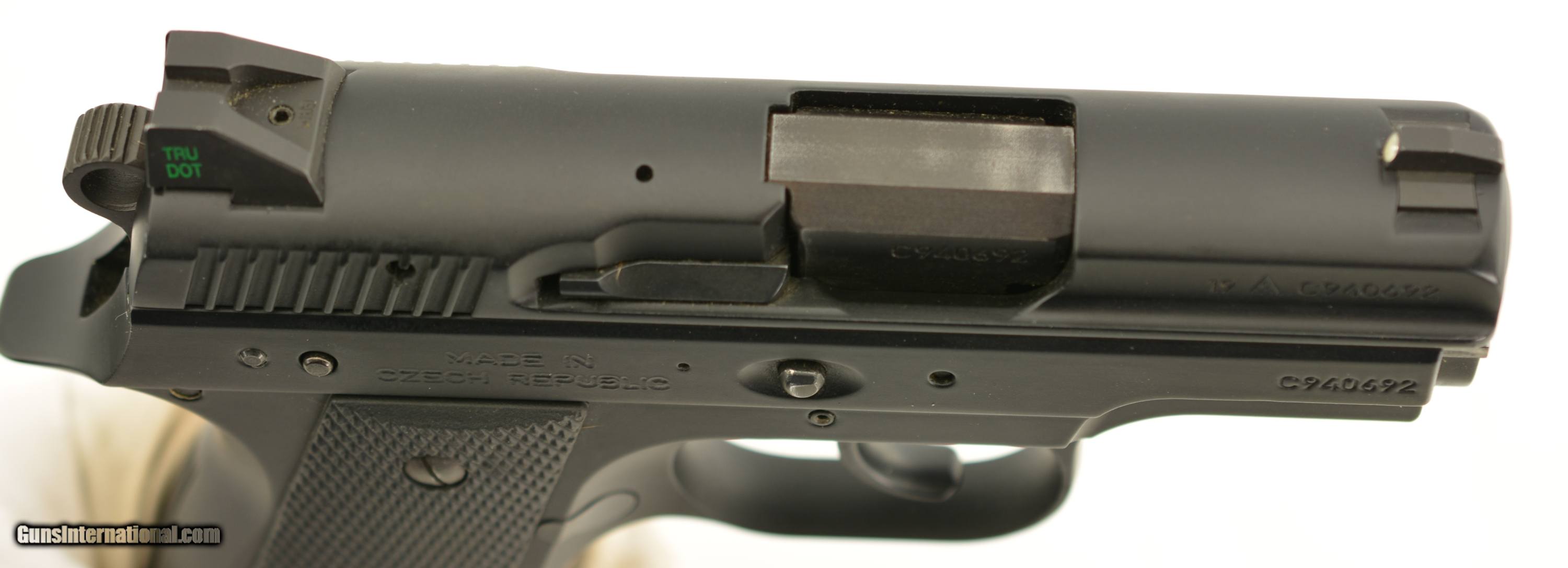 Description: Serial #C940692, 9mm Luger (9 x 19), 3 inch barrel with a bright, excellent bore. This is the CZ 2075 BD RAMI pistol manufactured in the Czech Republic this little compact pistol features DA/SA, decocking lever, Tritium 3 dot night sights, black polycoat finish and comes with a standard double stack 10 round magazine and two – 14 round extended round magazines with finger extension. The gun is in excellent condition with virtually all of the original finish showing very minor handling wear and comes in the original hard plastic case with manual and lock. FFL SOLD Manufacturer: CZ Model: 2075 Caliber Info: 9mm Gauge Info: 9mm |