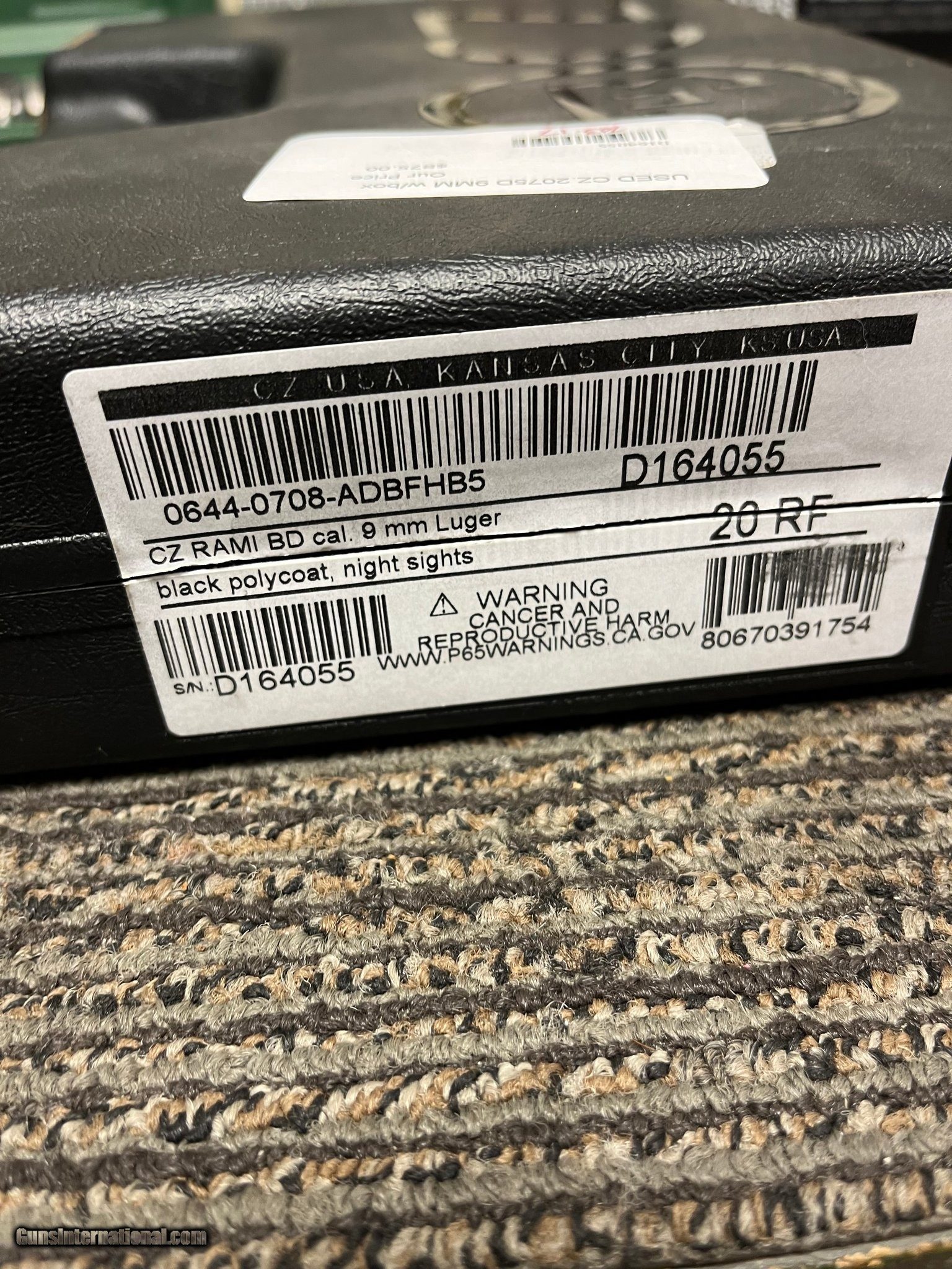 Description: Guns Listing ID: 569786 CZ 2075 Rami 9MM semi auto pistol. In factory box with manual and factory 10 and 14 rd magazines. Great shape! SOLD Manufacturer: CZ Model: 2075 RAMI BD Caliber Info: 9MM LUGER (9x19 PARA) Condition: Used - Non-Certified Barrels: 3" BARREL Action: SEMI AUTOMATIC Finish: black |