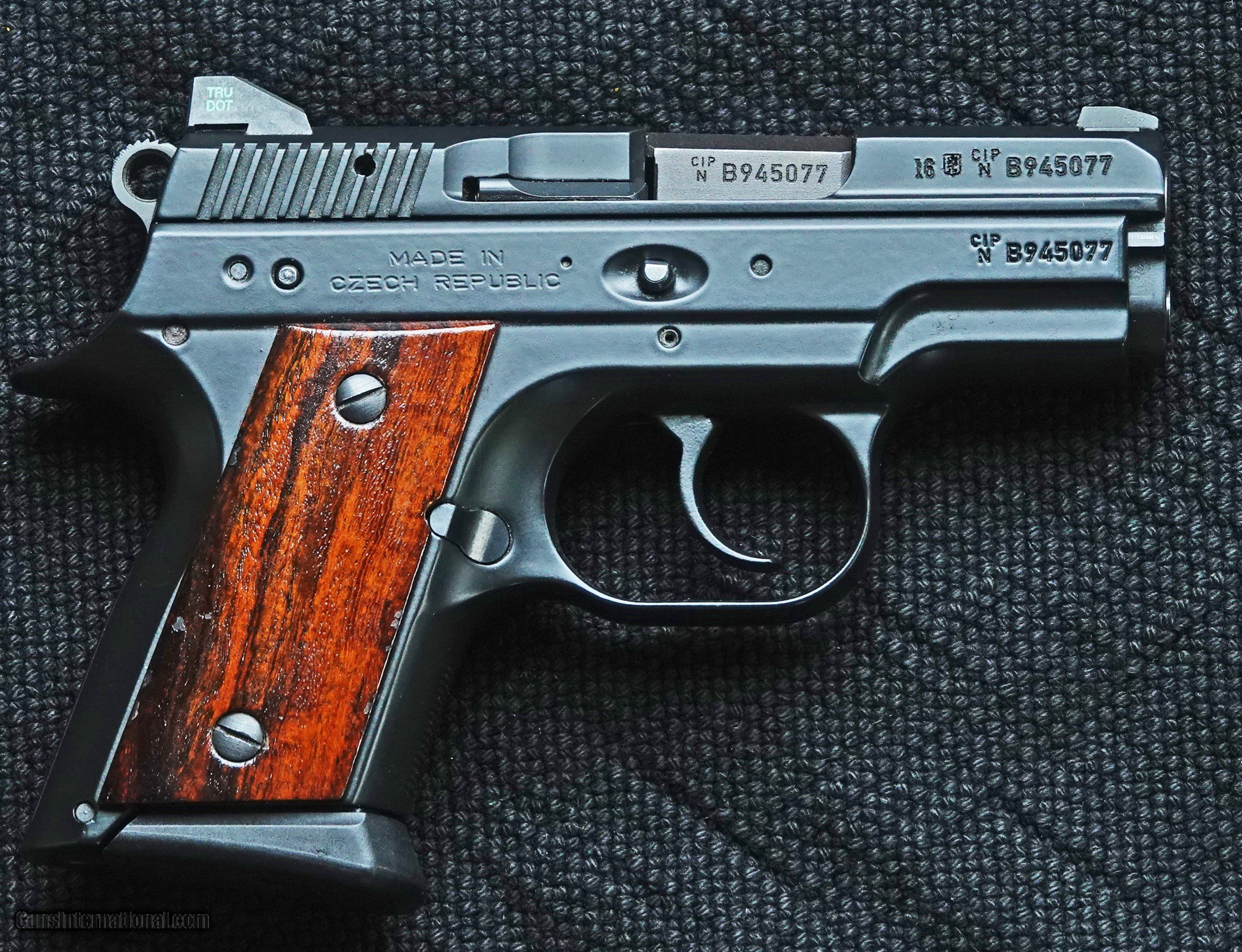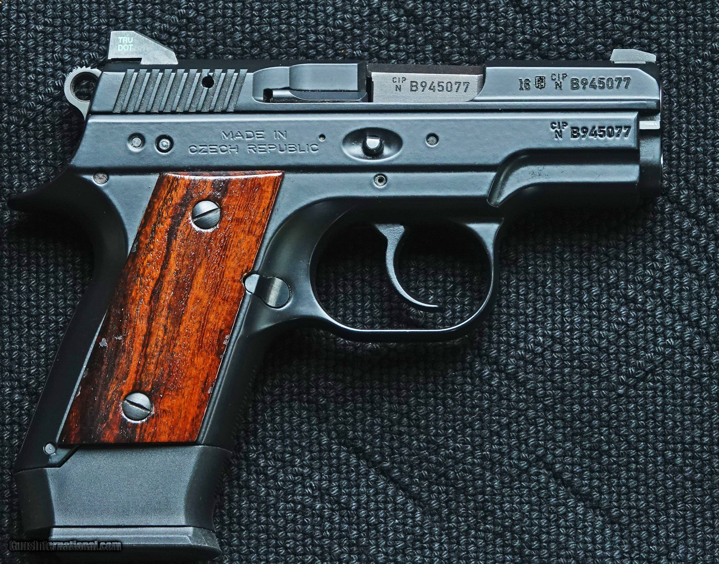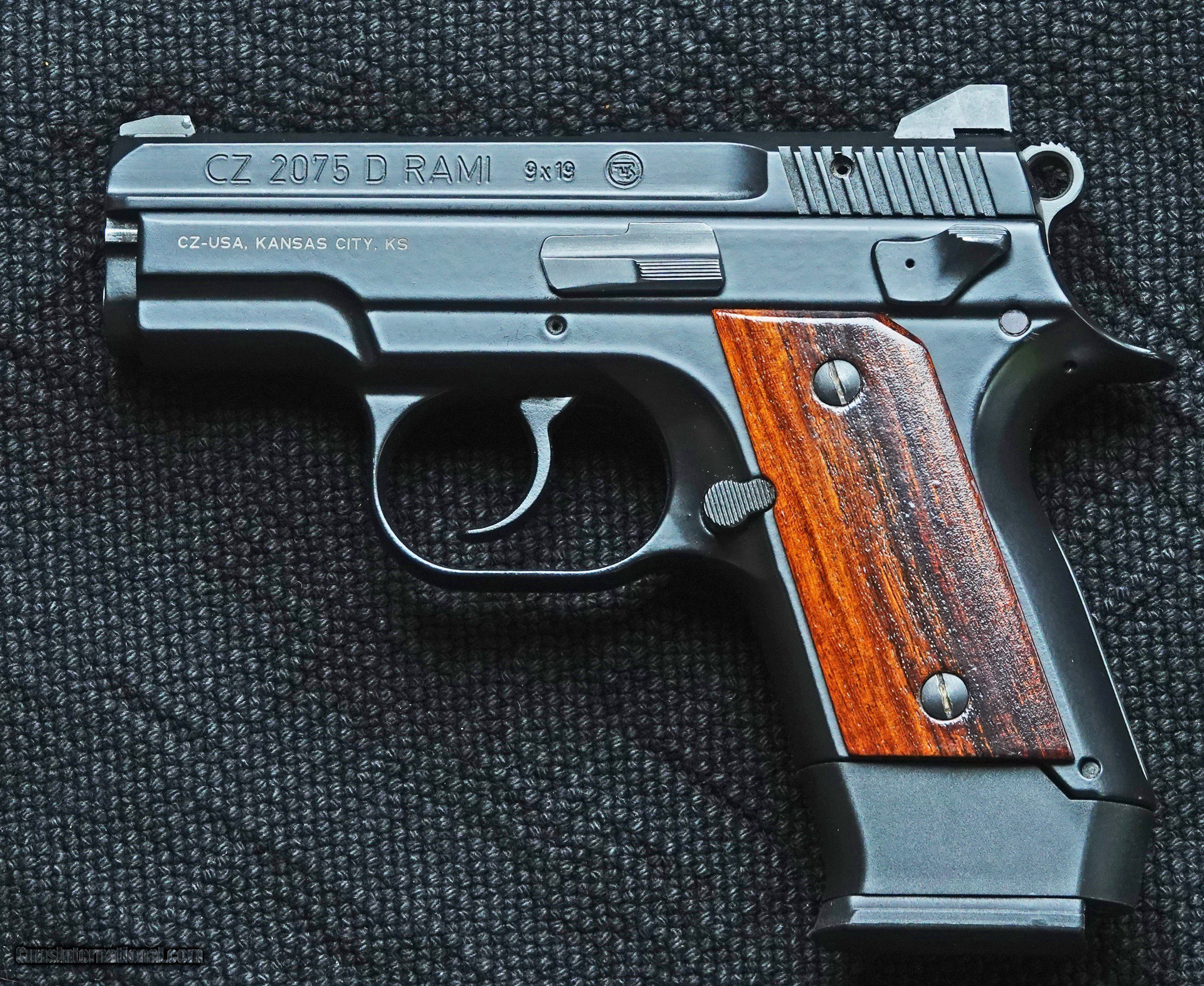 Description: CZ 2075 RAMI BD 9MM PISTOL - SPECIFICATIONS: 3" BARREL - TOTAL LENGTH 6.5" - TOTAL WEIGHT 25 OZ -. METAL ALUMINIUM FRAME - STEEL SLIDE - TWO CLIPS - CAPICITY 10 ROUND AND 14 ROUND - 3 DOT PROLIGHT NIGHT SIGHTS - MANUAL DECOCKER. THE FIREARM CAN BE CARRIED LOCK AND LOADED AND FIRED WITHOUT RELEASING A SAFETY. A EVERY WILL DESIGNED FIREARM AND HAS A GOOD REPUTATION. EXCELLENT FOR CONCELLED CARRY. CONDITION - EXCELLENT HAS NO VISIBLE METAL WARE - WOOD PANEL GRIPS SHOW SLIGHT (MINOR) FINISH CHIPS - NO BOX. PHOTOS SHOW 14 ROUND AND 10 ROUND CLIPS INSERTED. SOLD |