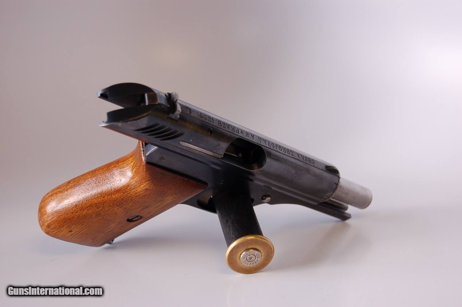 Description: This is one of the very first CZ 24 pistols ever made…and it is Czech proofed and British proofed! CZ Model 1924 (vz. 24), in .380 ACP, was the standard Czechoslovak Army pistol of the inter-war period manufactured by ?eska Zbrojovka (CZ) in Prague (as displayed on a rib on the top of the slide “?eska Zbrojovka A.S. v Praze”). There is something special and intriguing about this pistol. Extremely low Serial Number: 1259. No import marks. All components match: barrel, frame, and slide. The pistol has 98% of its original bright blue finish remaining. The trigger, hammer, and extractor retain about 98% of the original straw color. It is fitted with one-piece, smooth and well-preserved walnut grips. Excellent overall condition. Overall, approximately 200,000 CZ 24 pistols were made. According to most sources, the regular serial number range for the CZ 24 pistol is: 12,000-190,000 (according to the book “Know Your Czechoslovakian Pistols” by R. J. Berger, there were some pistols produced as part of small international orders/contracts in a separate serial number range, for example, all 9-shot CZ 24 pistols range from serial number 1 to about 3,100, and are dated from 1929 to 1931). The serial number of this pistol is 1259! However, it is not a 9-shot pistol. The three nearest lowest serial numbers we have seen in years were in the 10,000, 11,000, and 12,000 range…and nothing in between. Again, our pistol’s serial number is 1,259. Based on the proof marks, the featured pistol seems to be a part of the original order for 20,000 CZ 24 pistols completed in June 1926. The pistol is factory dated 25 (1925) and it stayed in the factory warehouse until purchased by the Military in 1926. It displays the 1926 acceptance “J, rampant lion, 26” mark of Czechoslovak Military. The pistol is unit marked to the Czechoslovak Army’s 17th infantry regiment (17P 39). If this pistol wasn’t a part of a small international contract, it had to be captured by the British Army during WWII. In June 1945, the British Army stood at 3 million men, and with its Allies, it was victorious against Nazi Germany in Tunisia, Italy (1943), France and Germany (1944-45) etc. But then how did the featured CZ 24 end up in the United States? The British have laws, dating back to 1813, relating to the sale of guns that go some way to protecting the public from unsafe guns of any age. All British guns are tested before they can be sold by a system known as “proofing”. This takes place in one of the UK proof houses: Birmingham or London. Pistols that received British proofs prior to being disposed of in the 1950s, should have matching proofs on the slide, receiver (frame), and barrel. Britain has used two commonly found sets of proof marks. One is from the Proof act of 1925-1955, the other is the Proof act of 1955. The 1955 proof act removed the requirement to mark the pistol “Not English Make”. Our featured CZ 24 pistol displays the “Not English Make” mark underneath the 1926 acceptance “J, rampant lion, 26” mark of Czechoslovak Military. Therefore, the pistol was brought to Britain before 1955. Our pistol displays the Birmingham Proof House marks: crown over “BP” on barrel, crown over “NP” on barrel, and a crown over "BV" on barrel, slide, and receiver (frame). These Birmingham Proof House marks date back to 1925-1954. The circle around the marks means “Not English Made”. “BP” surmounted by a crown represents “Provisional and Definitive Proof”. “BV” surmounted by a crown is a “View Mark”. “NP” surmounted by a crown is a “Definitive Nitro Proof”. The CZ 24 was an improved version of the CZ 22, which had been licensed from Mauser. Production of the CZ 24 started in August 1925. The original order for 20,000 pistols was completed in June 1926. More orders followed, and by the end of 1929, 100,000 pistols had been accepted by the Military and Gendarmerie, called in Czechoslovakia the “?etnictvo”. An inventory on January 1, 1939, showed the Czechoslovak Army and Air Force had on hand 171,756 CZ 24 pistols. CZ 24 is a meticulously crafted, well-built, robust, and reliable pistol that was very highly thought of at the time. During the German occupation (March 1939 – May 1945), the Czechoslovak Armed Forces were disarmed, and all the weapons were utilized by Germany and its allies. The CZ 24 pistols were not marked by the Germans, in any way, except for those used by the German Navy. CZ 24 pistols were also issued to the German Air Force, and Waffen-SS. The pistol is fitted with one-piece, smooth wood grips. Magazine capacity is eight rounds, and a Mauser Model 1910-style safety switch is mounted to the left of the pistol. The pistol is housed in an original leather flap holster containing one extra CZ 24 magazine. SOLD Manufacturer: CZ Model: 24 Serial Number: 1259 Caliber Info: 380acp Condition: used |