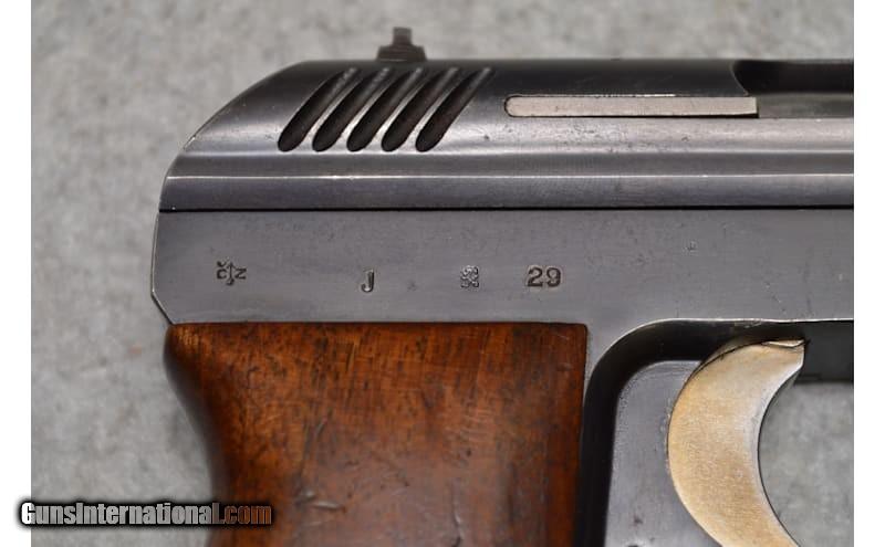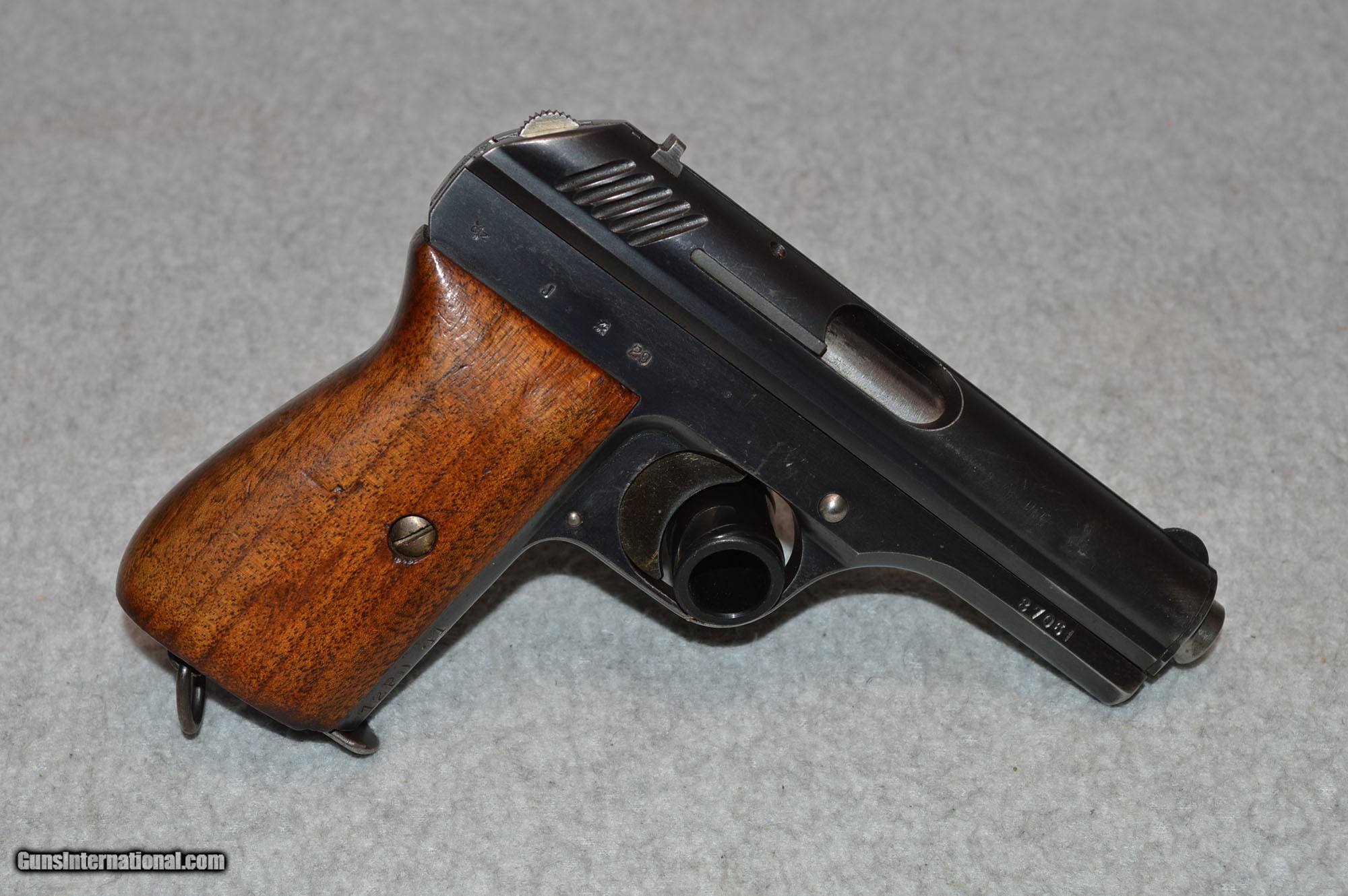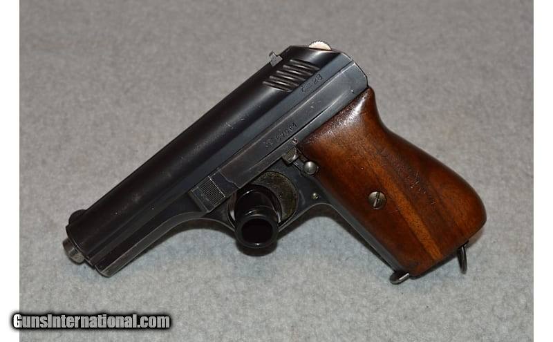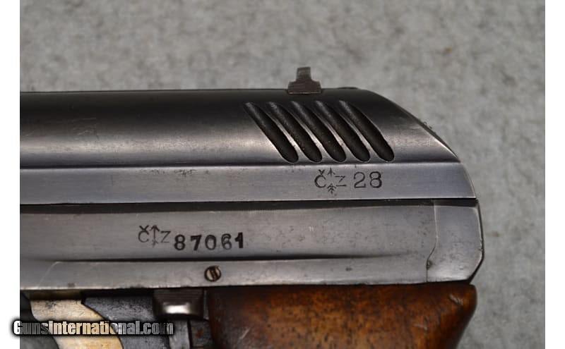 Description: CZ MODEL 28 POLICE MARKED WW2 SEMI AUTO 380 AUTO SERIAL NUMBER: 87061. BARREL: 3 5/8". CALIBER: 380 AUTO / 9 MM KURTZ. MANUFACTURED: 1940 - 1944. Blue finished steel with Straw finished trigger. Frame is marked 12 PD 41 on front strap. Grips are smooth wood. Has Dark brown leather holster with 1939 date inside. CONDITION: Metal is 85% with bright bore, Grips are Very Good. .380 ACP Barrels: 3.5 Inches Weight: 1.45 lbs Item Location: Avon, OH Price: $799.99 Contact Seller |