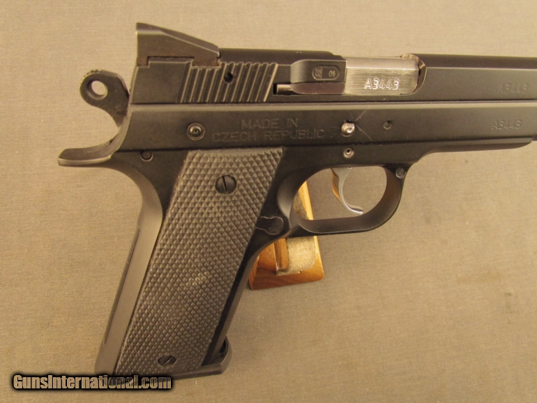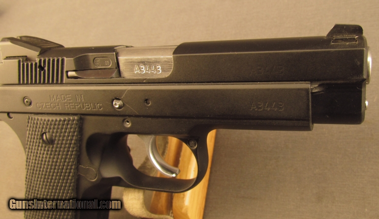Description: Serial #A3443, .40 S&W, 4? barrel with an excellent, bright bore. This pistol is in excellent shape overall and has just a few small silvered areas along the top edge of the slide on the left where the matte black finish has worn slightly, and some mild disassembly scratches on the right side of the frame at the slide release pin. The checkered neoprene grips are likewise in excellent shape and the pistol is housed in its original black CZ plastic case with one 10 round magazine, bore brush, cleaning rod, magazine loading tool, and the original CZ test target report. This is a fine and well-made pistol that is in excellent condition overall. FFL SOLD Manufacturer: CZ Model: CZ-40B Serial Number: A3443 Caliber Info: .40 S&W Gauge Info: .40 S&W |