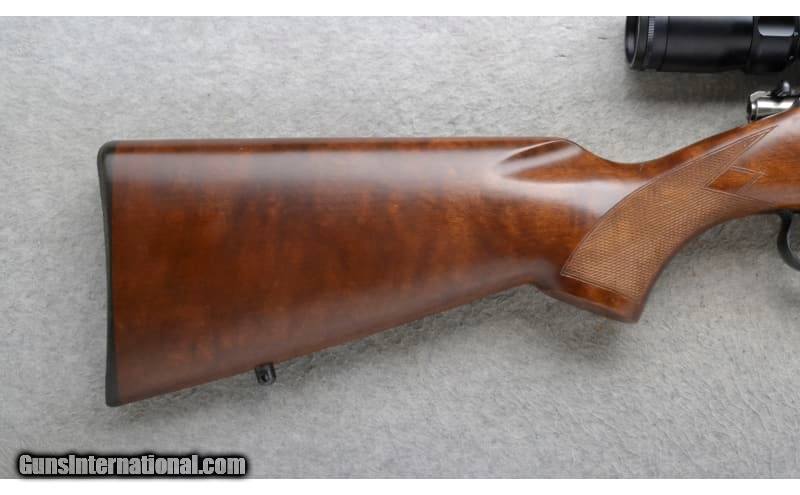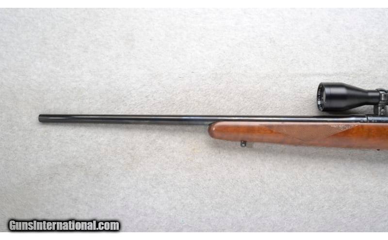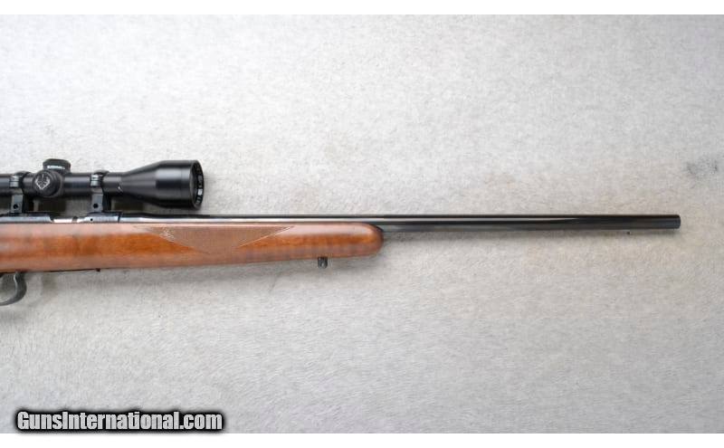 Description: This CZ Model 452-2E American is a right hand bolt action rifle in .22 WMR Cal. It has a 22 inch barrel. It is outfitted with a Bushnell 3-9x40 Scope. No iron sights. The butt stock is a checkered grip walnut pistol grip. The forearm is a checkered grip walnut. .22 WMR SOLD Chambers: Detachable magazine. Metal Condition: Very Good. Wood Condition: Good. Light handling/use marks. Bore Condition: Excellent. Barrels: 22 inch. Stock Dimensions: LOP 13 1/4 inches. Fore End: Checkered grip walnut. Butt Pad: Checkered black plate. Weight: 7 lb. 2 oz. Sights: Bushnell 3-9x40 Scope. No iron sights. Item Location: Richfield, WI |
