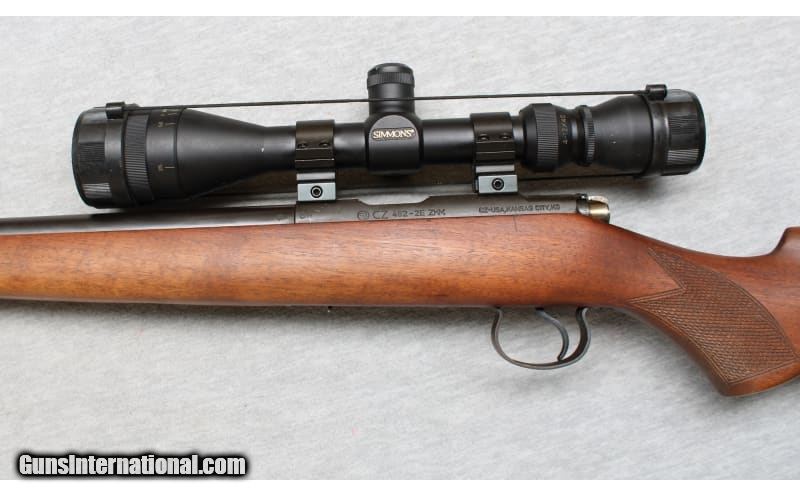 Description: CZ 452-2E ZKM chambered in.22 Long Rifle. This bolt action rifle has a 21.5" barrel and a right-handed walnut oil finished stock. It uses a 5-capacity magazine and is fitted with a Simmons 4-12x40 scope. It includes a Time Precision Supertune. It allows the shooter to adjust the exact amount of weight dampening for his or her gun and ammunition combination. With the Supertune, the shooter should achieve the best possible groups. .22 Long Rifle SOLD Metal Condition: Excellent Wood Condition: Excellent Bore Condition: Bright Barrels: 21 1/2 Inches Triggers: Factory Stock Dimensions: LOP 13 1/2 Inches Fore End: Smooth Walnut Butt Pad: Rubber pad Sights: Simmons 4-12 x 40 Item Location: La Vista, NE |