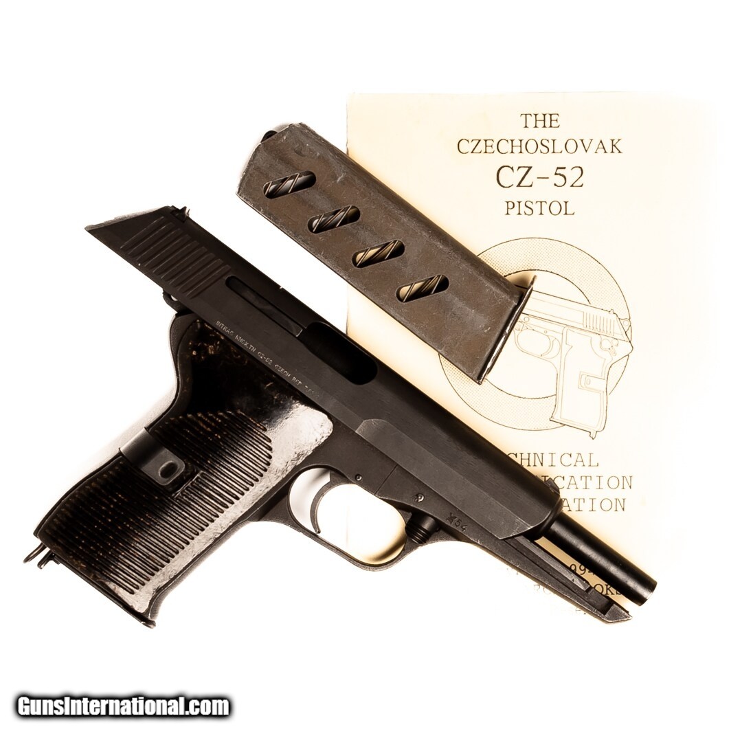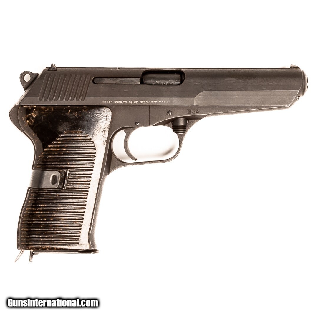 Description: Guns Listing ID: 850948 The CZ 52 is a military surplus handgun chambered in the Soviet 7.62X25mm pistol cartridge. They are very solid pistols, but became quickly outdated as the Cold War went on. This is a great range gun and collector piece for those interest in Soviet or Cold War era firearms. This handgun features two 8-round magazines and a manual. Get the best bang for your buck when you get a Certified Used Firearm . When you see the Certified Used stamp on any of our firearms, you can be confident that you’re getting exactly what you want – a gun only in very good to excellent condition and held to the highest quality standard. All Certified Used Guns come with a ‘no questions asked’ return policy . PLUS, ALL CERTIFIED USED GUNS SHIP FREE! SOLD Manufacturer: CZ Model: 52 Caliber Info: 7.62X25MM TOKAREV Condition: Used - Certified Barrels: 4.5 BARREL Finish: BLACK |