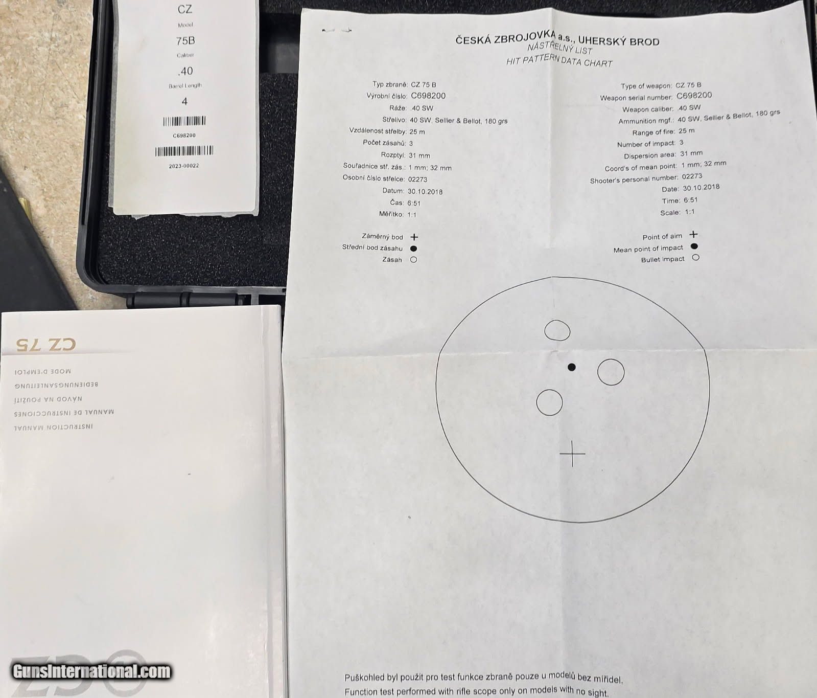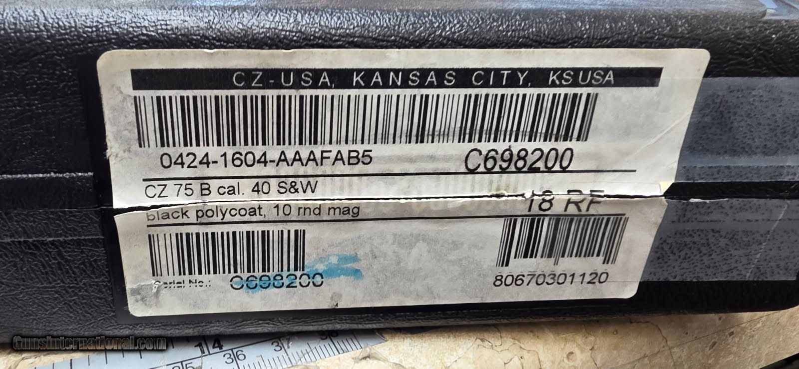 Description: Guns Listing ID: 508812 CZ 75B Black .40S&W 4.7-inch 10Rds 01120, USED in OEM box SOLD Manufacturer: CZ Model: 75 B Caliber Info: .40 S&W Condition: Used - Non-Certified Barrels: 4.6 BARREL Action: DOUBLE ACTION Finish: BLACK Weight: 2.2 lbs. |