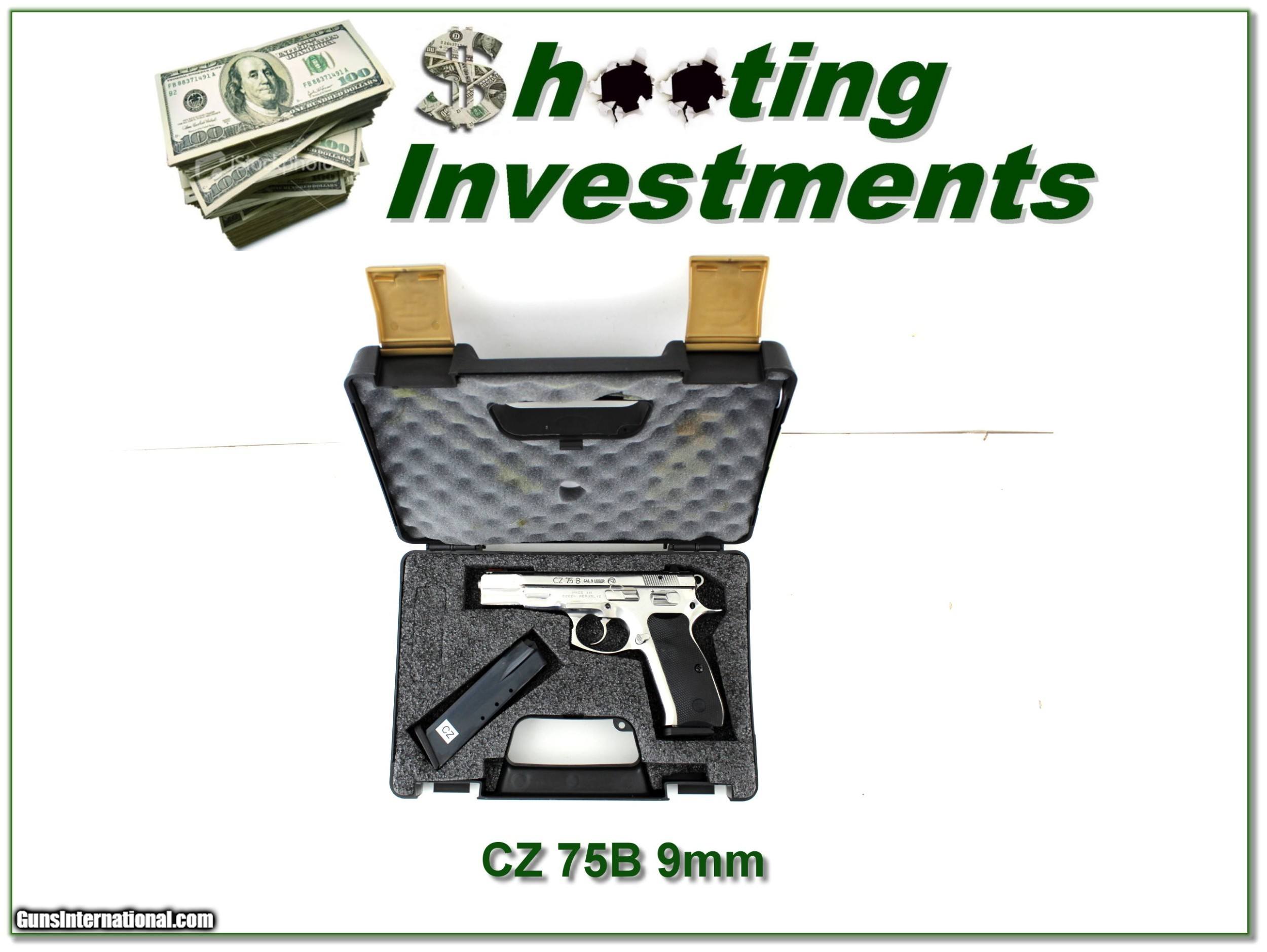 Description: This is an excellent near new CZ 75B. It is the hard to find high polished stainless model. It comes as seen in original case with 2 magazines and papers. I am selling this one on consignment and as such lay-a-way can’t be used. It does of course have the standard 3-day inspection. Shipping and insurance is $39. Please email me with any questions or larger pictures. (Consign your quality firearms with Shooting Investments for only 12%! Let me know if you have any you would like to sell!) 23-0186 Payment: Payment is by Money Order, Cashiers Check or Personal Check. I can now also accept Credit Cards (MasterCard, Visa, Discover & American Express) with a 3% convenience fee. Shipping: The shipping charge will be listed in each description. It is $49 for most long guns. Some heavy guns, over 48in boxes or those insured for over $2000 will be higher. Shipments to Alaska and Hawaii are higher because air shipment is required. Most firearms are shipped on Tuesday and Thursday and usually in 5 days of receipt of payment. We package all shipments carefully and insure them. Optics are shipped Priority Mail and most other non-firearm shipments are shipped First Class. Returns: Our return policy is simple. If for any reason you are not pleased with your purchase, you may return your item for a full refund of purchase price. Ammunition cannot be returned. It is important to us that you are happy. Guns cannot be fired or dissembled before returning them and they must be returned in the same condition as received. Notification of a return must occur with-in 3 days of receipt at your dealer. Shipping, convenience and dealer fees are not refundable and are the responsibility of the buyer. Lay-a-way: If needed, we offer a 60 day lay-a-way option on most firearms. It is 1/3 now, 1/3 in 30 days and 1/3 in 60 days. Lay-a-way firearm sales are final and if not completed the first payment cannot be returned. Consigning your firearms with Shooting Investments: We will help you get top dollar for your firearms. While most local guns shops charge 20% or more, our fee is only 12% with a minimum of $75. At your local gun shop it might take months to sell. Selling on-line provides instant access to thousands of interested buyers. You won’t find any other on-line dealer willing to sell your firearms for only 12% or listing every gun on 3 separate s. Selling through an House typically costs the seller 15% and the buyer an addition 15% (so 30%) and you have to wait several months to sell and longer to receive funds. If properly priced, we will sell your firearms in a few weeks. Send us an email or give us a call and we’ll explain how easy it is for you to get top dollar. Trading: Trading for use is really just buying your gun to re-sell. If you have a gun you want to trade, please email a picture and we will let you know what we can give or it. You will always get more if we sell it for you on consignment. Help for California Buyers: We are happy to ship to California. It is the buyer’s responsibility to make sure any item you buy is legal in your state. We are also happy to help with your purchase of a firearm from someone other than us. If you see a gun you would like to buy but the seller can’t or won’t ship to California they can ship to use and we’ll then ship it to your California dealer. The cost for this service is only $30 + shipping. Let us know if we can help! SOLD |