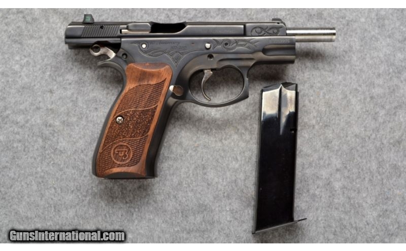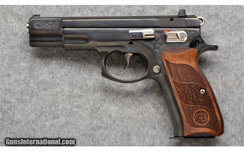 Description: This is the CZ 75B 40th Anniversary (1975 - 2015) pistol in 9mm. SOLD Caliber Info: 9mm Metal Condition: Very Good Wood Condition: Very Good Bore Condition: Bright and Shiny with Strong Rifling Barrels: 4" Stainless Triggers: DA / SA Stock: Textured Wood Grips Weight: 32oz Sights: Partridge Night Sight Front / Low Profile Night Sight Rear Extras: Case, 2 16-RND Magazines, Lock, Manual Item Location: Allen, TX |