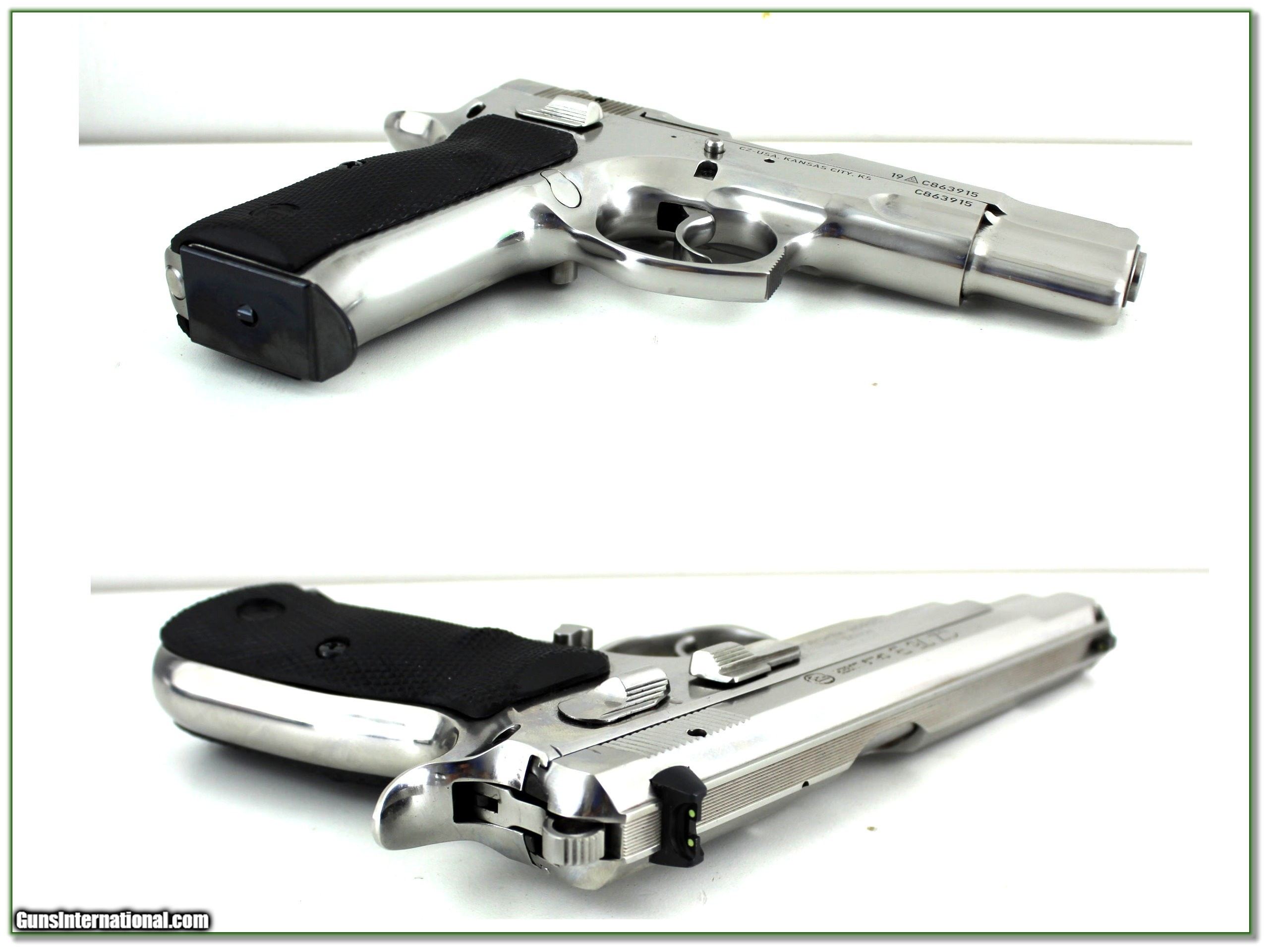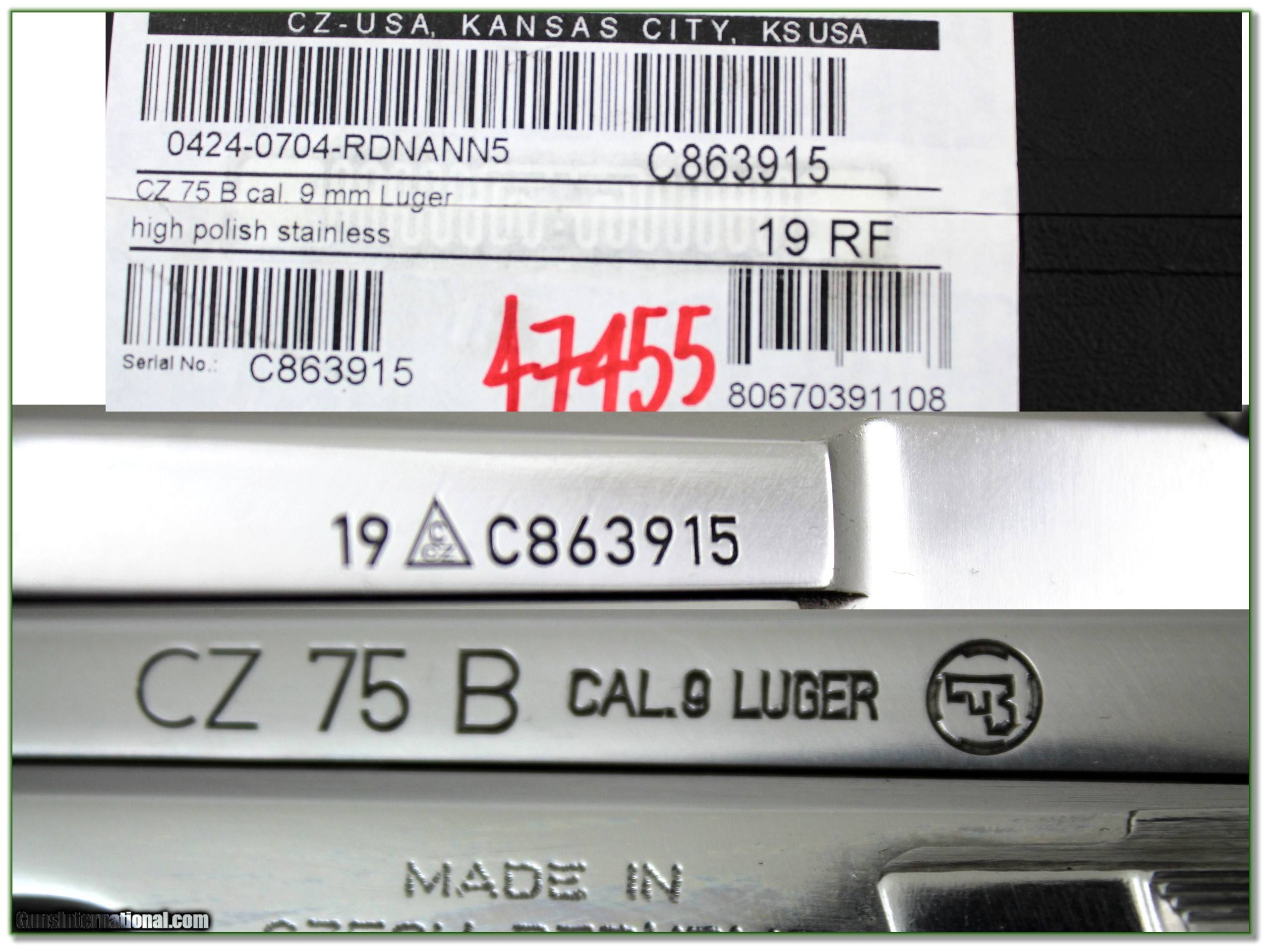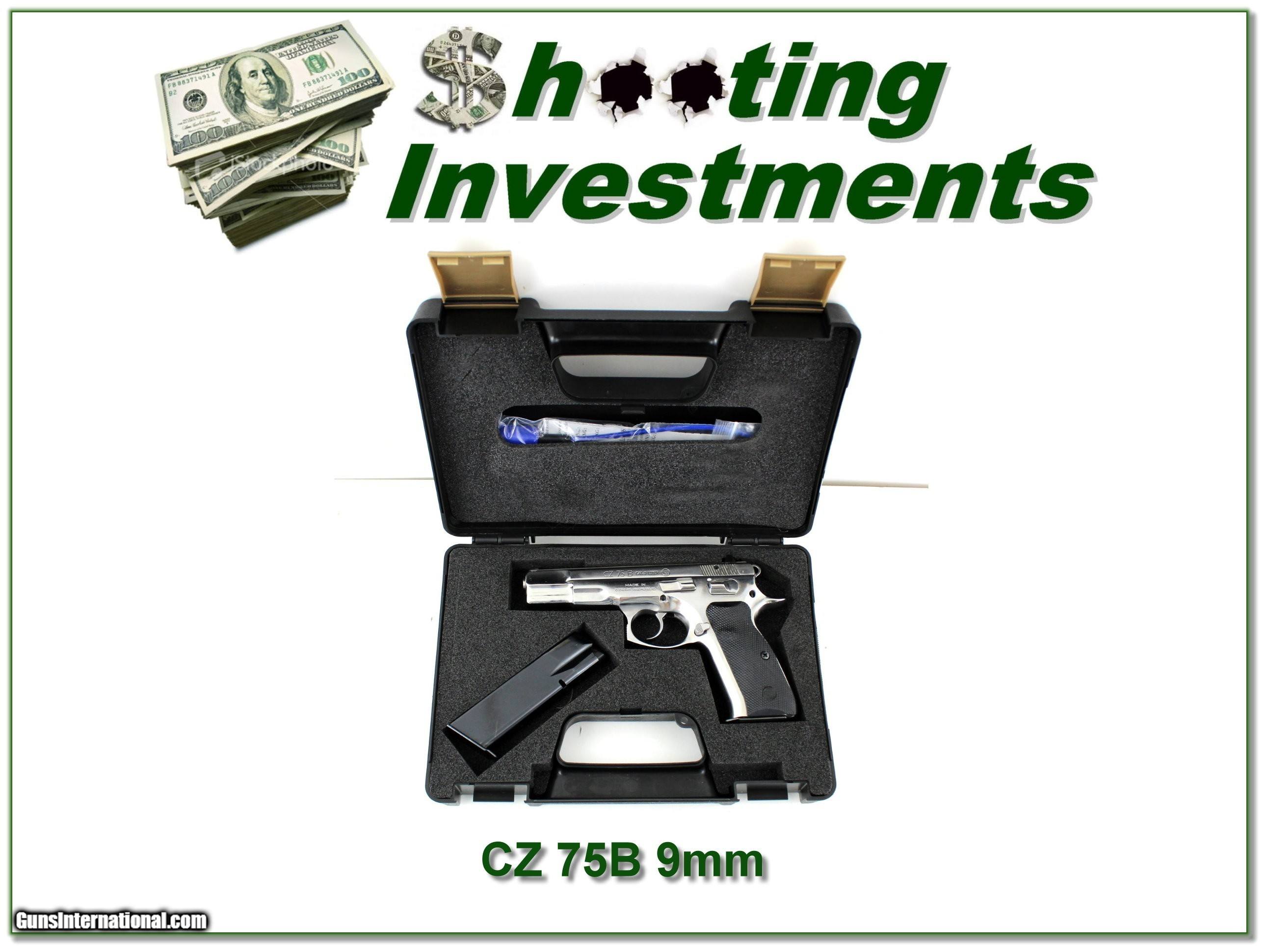 Description: This is a like new condition CZ 75 B 9mm with the beautiful High Polished Stainless finish. It comes in it’s original box with 2 magazines as seen! I am selling this one on consignment and as such lay-a-way can’t be used. It does of course have the standard 3-day inspection. Shipping and insurance is $39. Please email me with any questions or larger pictures. (Consign your quality firearms with Shooting Investments for only 12%! Let me know if you have any you would like to sell!) 23-0988 Payment: Payment is by Money Order, Cashier’s Check or Personal Check. I can now also accept Credit Cards (MasterCard, Visa, Discover & American Express) with a 3% convenience fee. Shipping: The shipping charge will be listed in each description. It is $49 for most firearms. Some heavy guns or those insured for over $2000 will be higher. Shipments to Alaska and Hawaii are higher because air shipment is required. Most firearms are shipped on Tuesday and Thursday and usually in 5 days of receipt of payment. We package all shipments carefully and insure them. Optics are shipped Priority Mail and most other non-firearm shipments are shipped First Class. Returns: Our return policy is simple. If for any reason you are not pleased with your purchase, you may return your item for a full refund of purchase price. Ammunition cannot be returned. It is important to us that you are happy. Guns cannot be fired or dissembled before returning them and they must be returned in the same condition as received. Notification of a return must occur within 3 days of receipt at your dealer. Shipping, convenience and dealer fees are not refundable and are the responsibility of the buyer. Lay-a-way: If needed, we offer a 60 day lay-a-way option on most firearms. It is 1/3 now, 1/3 in 30 days and 1/3 in 60 days. Lay-a-way firearm sales are final and cannot be returned. If a lay-a-way is not completed the first payment cannot be refunded. Consigning your firearms with Shooting Investments: We will help you get top dollar for your firearms. While most local guns shops charge 20% or more, our fee is only 12% with a minimum of $75. At your local gun shop it might take months to sell. Selling on-line provides instant access to thousands of interested buyers. You won’t find any other on-line dealer willing to sell your firearms for only 12% or listing every gun on 3 separate s. Selling through an House typically costs the seller 15% and the buyer an addition 15% (so 30%) and you have to wait several months to sell and longer to receive funds. If properly priced, we will sell your firearms within a few weeks. Send us an email or give us a call and we’ll explain how easy it is for you to get top dollar. Trading: Trading for us is really just buying your gun to re-sell. If you have a gun you want to trade, please email a picture and we will let you know what we can give for it. You will always get more if we sell it for you on consignment. SOLD |
