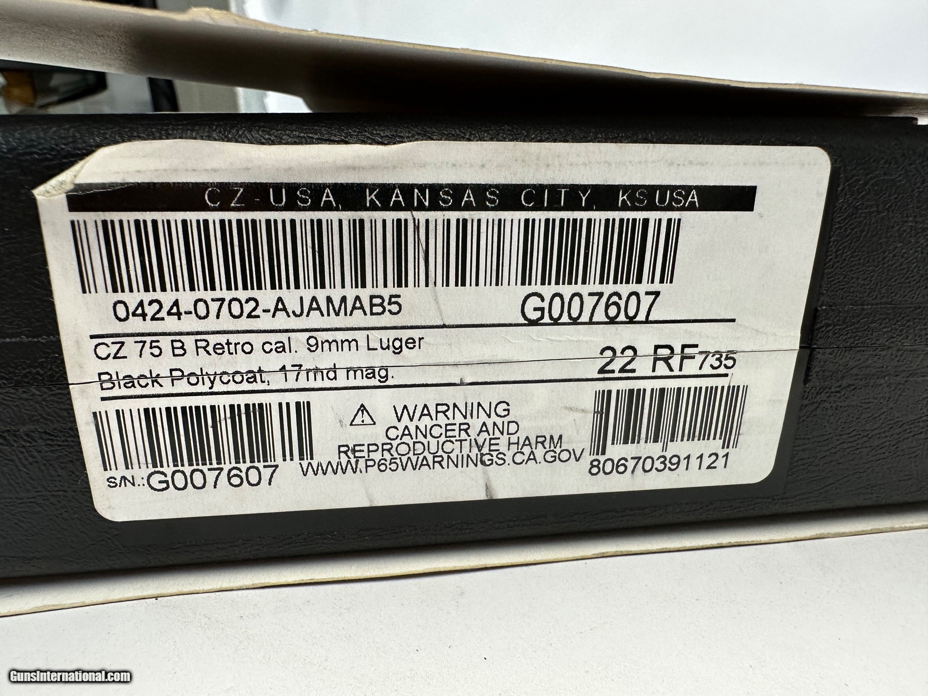 CZ 75 B Legend Retro Limited edition 9x19 Unfired.