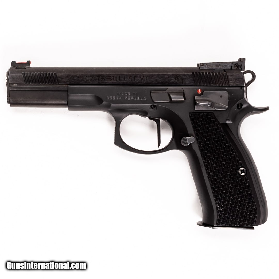 Description: Guns Listing ID: 313363 For sale is a 75 Bullseye from the CZ Custom Shop. This model is chambered in 9mm and has a red fiber optic front sight and adjustable rear sight. It is in excellent condition! Purchase includes the original case, manual, two 16-round magazines, bushing tool, and test target. SOLD Manufacturer: CZ Model: 75 BULLSEYE Caliber Info: 9MM LUGER Condition: Used - Certified Barrels: 5 BARREL Finish: BLACK |