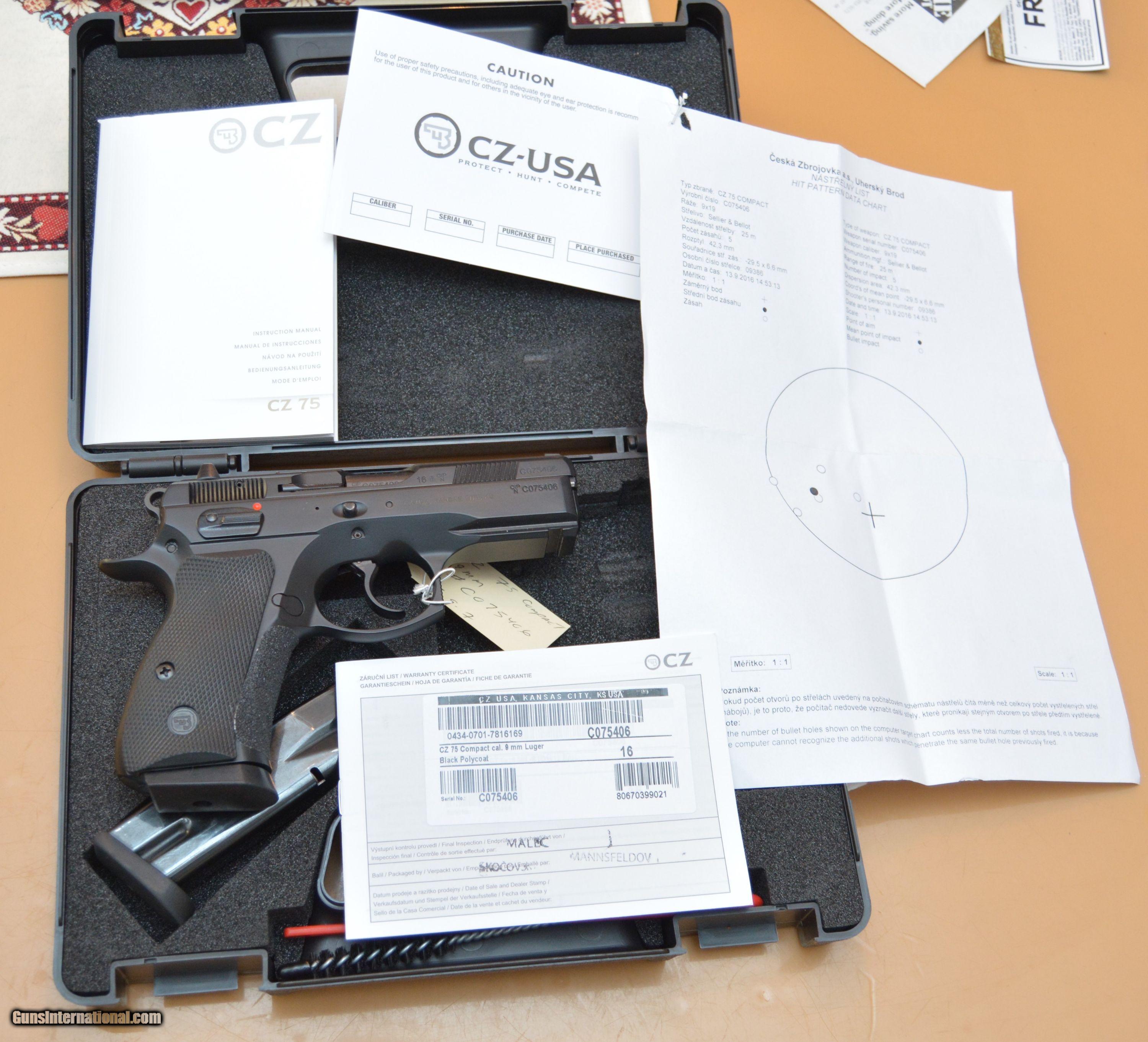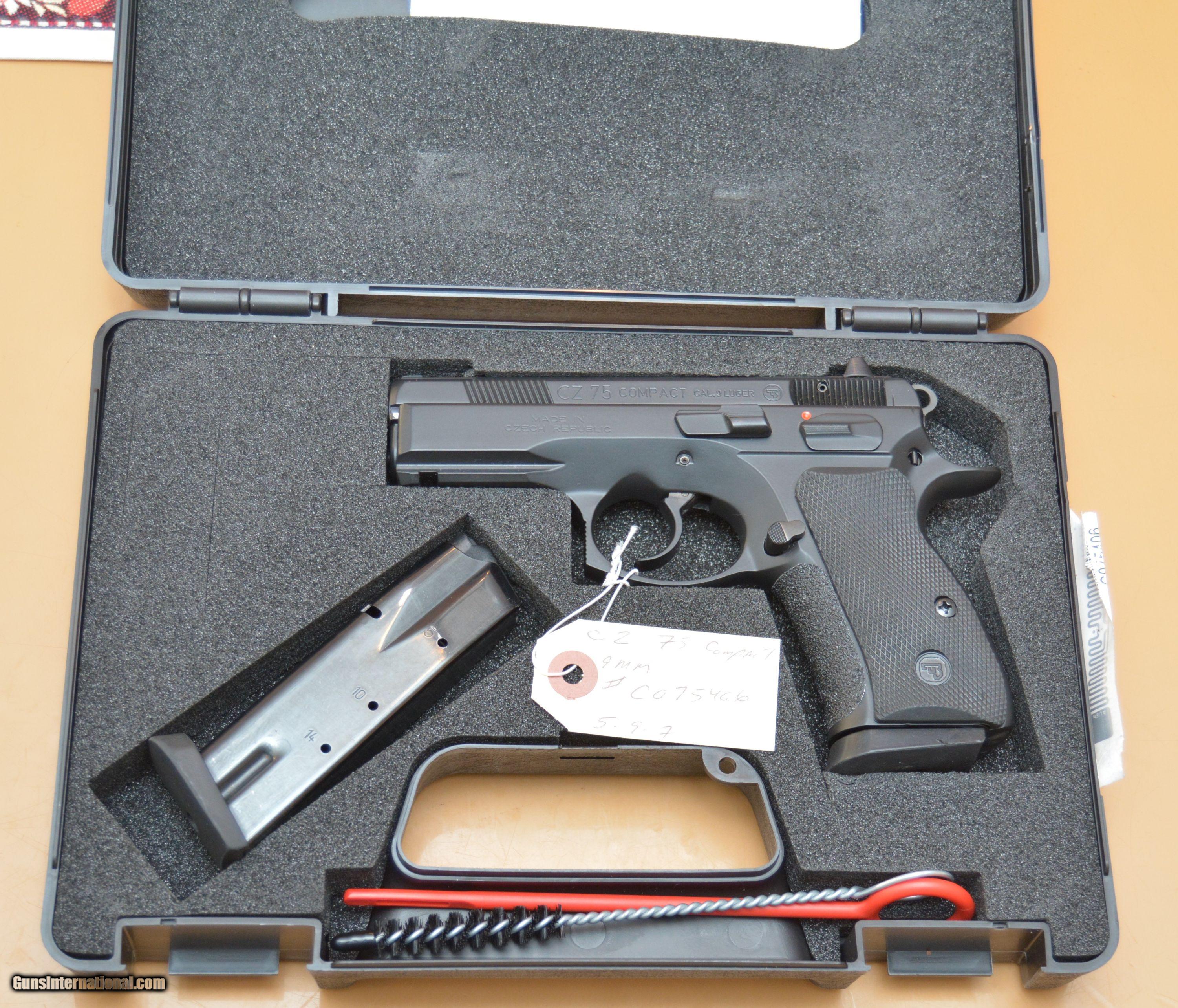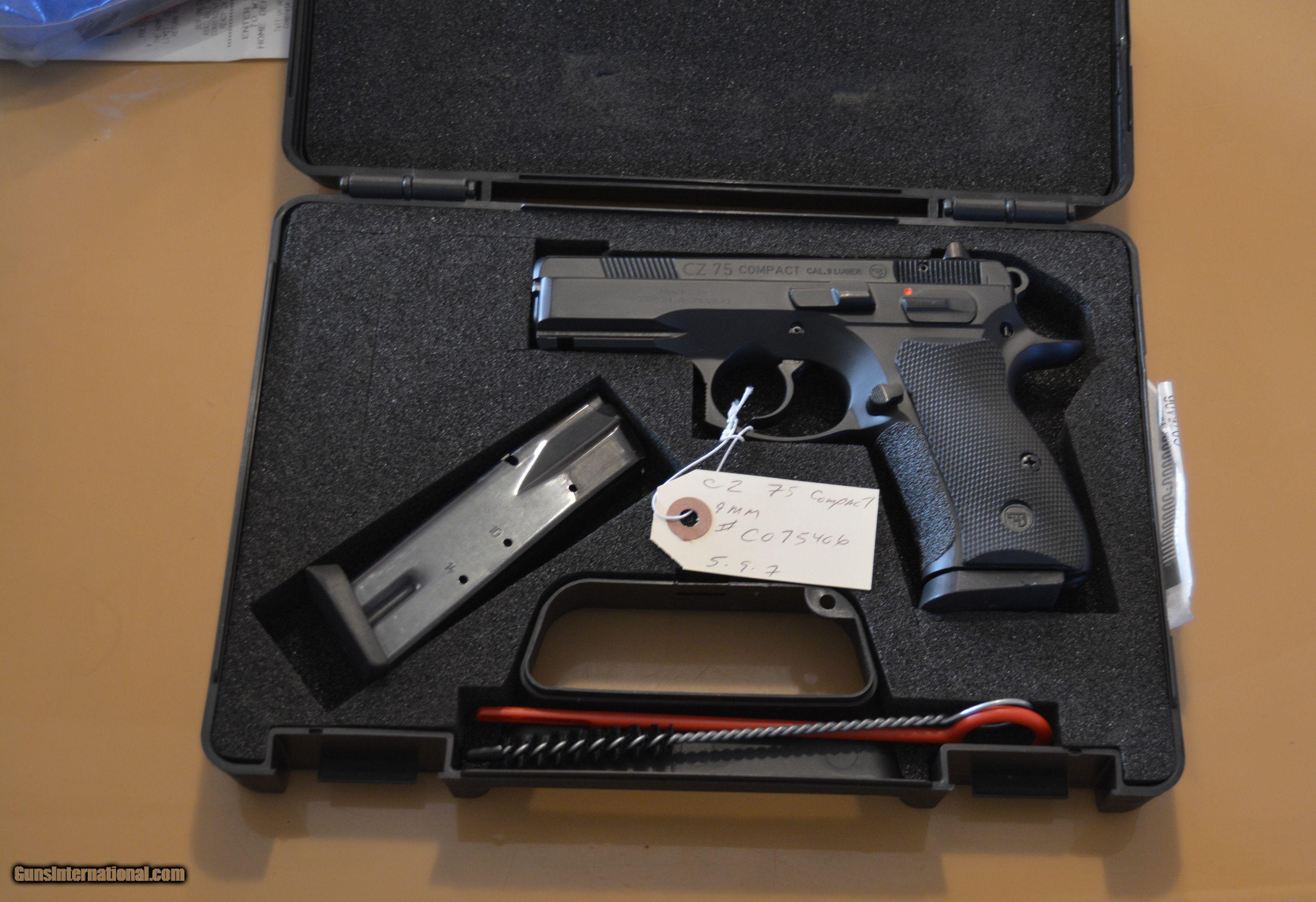 Description: CZ 75 Compact All Steel Offering one of only 1500 made and imported with the full-length dust cover please find this excellent CZ75 Compact in 9mm. Factory Model # 99021. The semi auto pistol bears serial # CO75406. The pistol fires from Double action or single action mode. Can be safely carried with live round in hammer and safety off like a modern double action revolver. Extremely easy to get into action during high stress situations. Still one of the best double action pistol triggers to be found on any semi-automatic ever. Firearm will ship with 2, 14 round magazines (know your area restrictions), ambidextrous safety, three dot sights, forward and rear slide serrations, frame accessory rail and original factory case and all original CZ factory papers to include the test target and unused warranty registration card are include with this pistol. Added grip tape to front of frame, blow dryer will facilitate its easy removal, less than 200 rounds down range no hick ups of any kind noted. Springtime honey do lists and other projects encourage sale of this pistol. Payment: Payment is by Money Order, Cashier’s Check or Personal Check. We accept, American Express, Discover, MasterCard and Visa with a 3% convenience fee. PayPal can be used for some items but never firearms. Please let us know if you would like to pay via PayPal. Shipping: Yes, we can and do ship firearms into California if legal there. Shipping will be $20.00 USPS Priority Mail. If illegal to own in your area don’t buy. Payment with US Funds from US Banks ONLY!!! Returns: Our return policy is simple. It is important to us that you are happy. Guns must not be fired or dissembled before returning them and they must be returned in the same condition as received. Notification of a return must occur with-in 3 days of delivery at your dealer. Shipping, convenience and dealer fees are not refundable and are the sole responsibility of the buyer. Ammunition cannot be returned. Lay-a-way: If desired, we offer a 30,45 or 60 day lay-a-way option on most firearms. It is 1/3 now, 1/3 in 30 days and 1/3 in 60 days. Lay-a-way firearm sales are final and if not completed the payments cannot be returned. Consigning your firearms with Treys Clays Incorporated: We will help you get top dollar for your firearms. While most local guns shops charge 20% or more, our fee is only 10% with no minimum. Local gun shops may take months to sell your item. Selling on-line provides instant access to thousands of interested buyers. Selling through Houses typically costs the seller 15% and the buyer an addition 10-15% buyers premium (so 30%) and you may have to wait several months to sell and longer to receive funds. If properly priced, we will sell your firearms in a few weeks. Send us an email or give us a call and we’ll explain how easy it is for you to get top dollar. Trading: Trading for us is really just TCI buying your gun to re-sell. If you have a gun you want to trade, please email a picture and we will let you know what we can give for it. You will always get more if we sell it for you on consignment. Help for California Buyers: We have always been willing to sell and ship to California. It is the buyer’s responsibility to make sure any item you buy is legal in the state. We are also happy to help with your purchase of a firearm from someone other than us. If you see a gun you would like to buy but the seller can’t or won’t ship to California they can ship to us and we’ll then ship it to your California dealer. The cost for this service is only $30 + shipping. Let us know if we can help! SOLD Manufacturer: CZ Model: 75 Compact Model 99021 Serial Number: CO75406 Caliber Info: 9mm Bore: Excellent Condition: Excellent Used Metal Condition: 99.9999999% Wood Condition: N/A Bore Condition: Excellent plus Action: Semi Auto Sights: Three Dot Night |