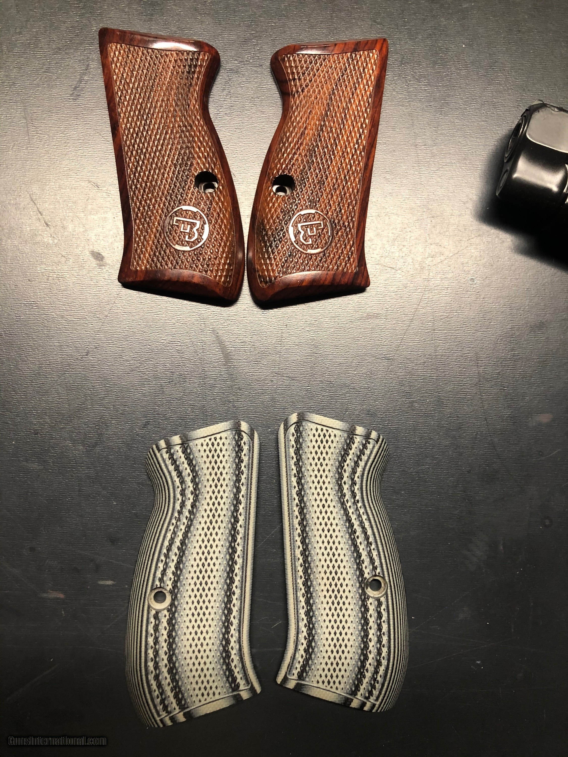 Description: Here is a CZ 75 Compact from the CZ custom shop. This is a VERY accurate and desirable custom shop gun. I have owned this pistol for a few years. It is in 99% condition or better. The CZ custom shop did significant trigger work with this firearm. It has a very light 3.5-4lb single action trigger pull and a double action pull so smooth you would swear it was a fine DBBL action revolver. It comes with the original box and paperwork, 2x14rd mags. 10rd mags available upon request. Comes with Mag loader, original grips, a set of wood grips and a set of VZ grips. There is also a Hi-Viz front sight installed. Please feel free to call or text if you have any questions. Buyer pays actual shipping costs. SOLD Manufacturer: CZ Model: 75 compact custom shop. |