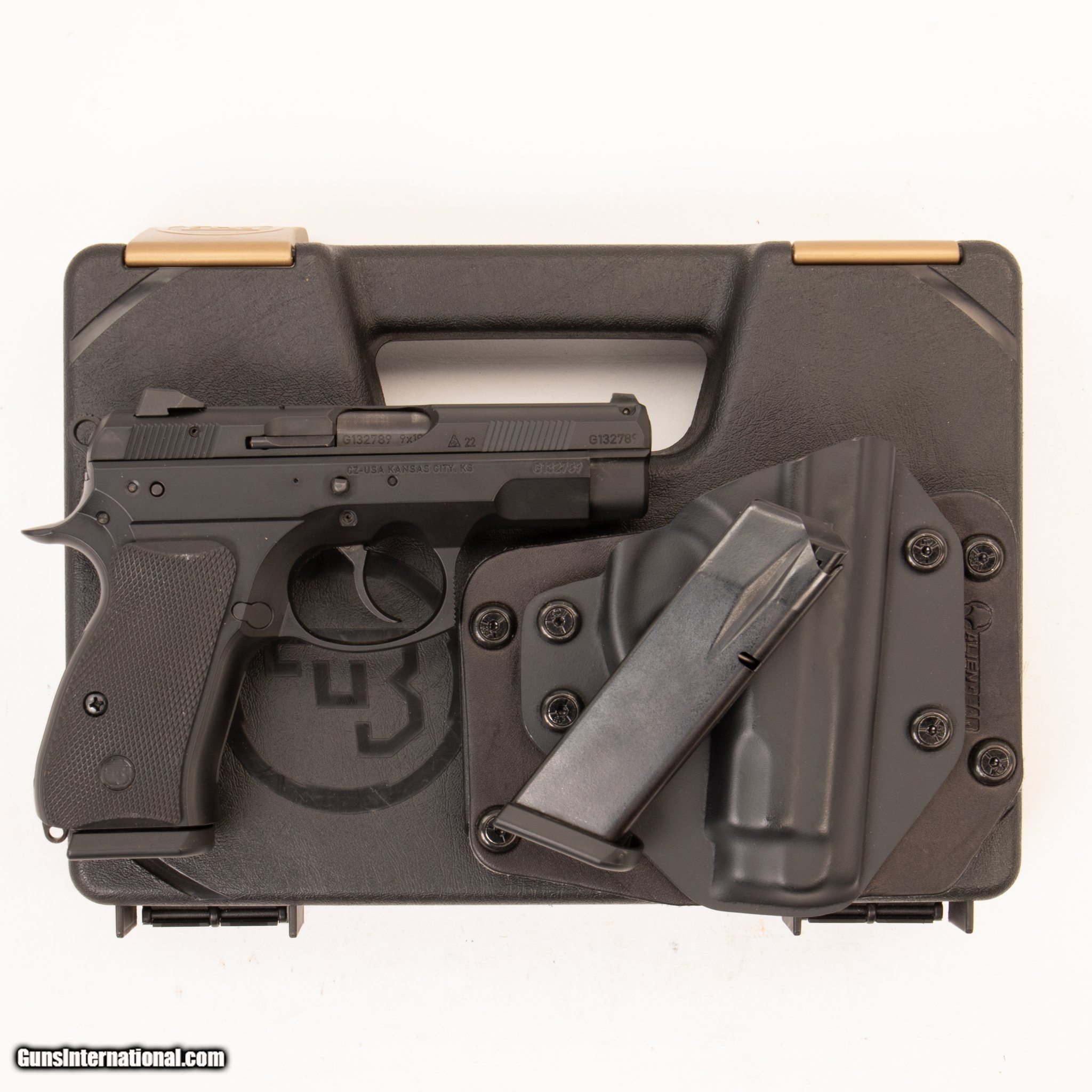 Description: Guns Listing ID: 476955 This CZ 75D Compact includes a CZ case, owner‚‚s manual, two 15-round magazines, and an Alien Gear holster. Get the best bang for your buck when you get a Certified Used Firearm . When you see the Certified Used stamp on any of our firearms, you can be confident that you‚‚re getting exactly what you want – a gun only in very good to excellent condition and held to the highest quality standard. All Certified Used Guns come with a ‚‚no questions asked‚‚ return policy . PLUS, ALL CERTIFIED USED GUNS SHIP F SOLD Manufacturer: CZ Model: 75 D COMPACT Caliber Info: 9MM LUGER (9x19 PARA) Condition: Used - Certified Barrels: 3.60 Action: SEMI AUTOMATIC Finish: BLACK Weight: 1.8 |