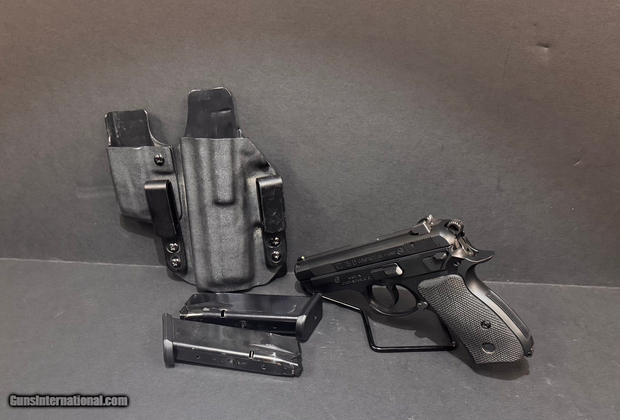 Description: Guns Listing ID: 547458 Includes two magazines, the original hard case, and a holster with a magazine clip. The CZ 75 D Compact, part of CZ’s renowned 75 series, is a durable alloy frame and decocker system, making it ideal for concealed carry, range use, or home defense. Known for its exceptional ergonomics, low recoil, and legendary reliability, the CZ 75 D Compact is a top-tier choice for shooters who want performance and comfort in a compact size. SOLD Manufacturer: CZ Model: 75 D PCR COMPACT Caliber Info: 9MM LUGER (9x19 PARA) Condition: Used - Non-Certified Barrels: 3.5 BARREL Action: SEMI AUTOMATIC Finish: black |