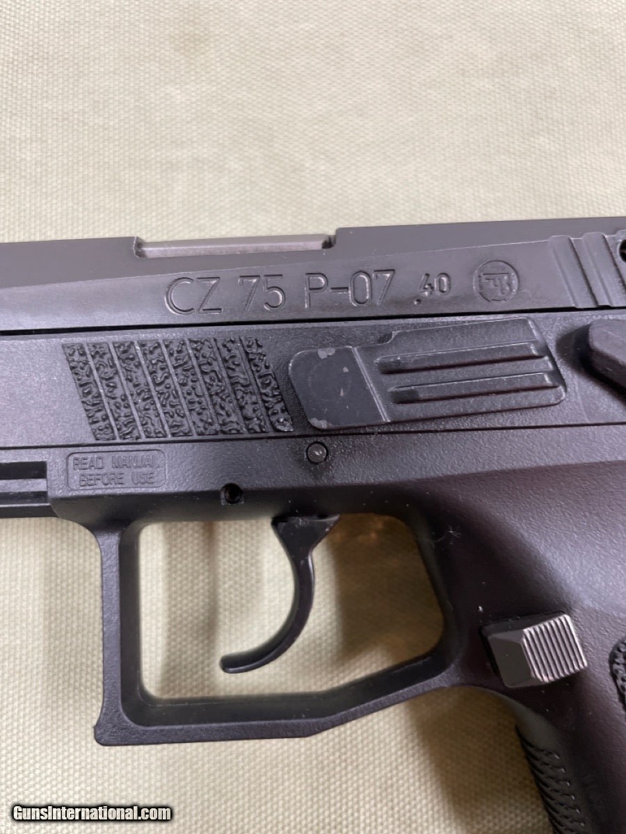 Description: Guns Listing ID: 682850 Inventory Number: FCS067926 Description: PISTOL: CZ-USA MODEL 75 P-07, SEMI - AUTOMATIC, 40 SMITH & WESSON, BLUE, YES - INCLUDES HARD PROTECTIVE CASE, 3.75\" Specific Details: NRA Modern Gun Condition Rating Standards: GOOD: In safe working condition, minor wear on working surfaces, no broken parts, no corrosion or pitting that will interfere with proper functioning. Finish / Color: Blue Case & Box: Yes - Includes hard protective case Caliber: 40 Smith & Wesson Action: Semi - Automatic Magazine: Yes - and includes 3 or more extra magazines Scope: No - Not Included Holster: No - Not Included SOLD Manufacturer: CZ Model: 75 P-07 Caliber Info: 40 S&W Condition: Used - Non-Certified Barrels: 3.75 BARREL Finish: BLUE |