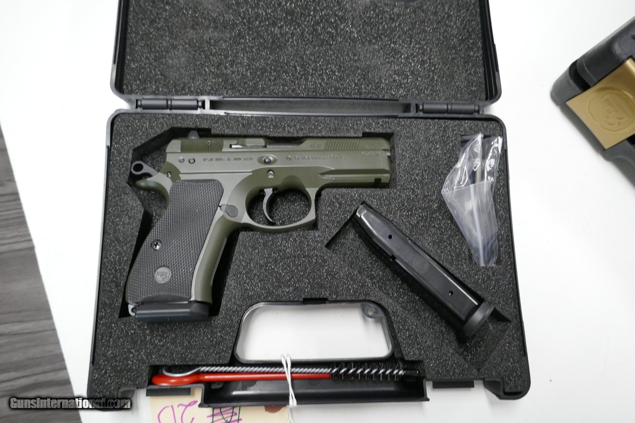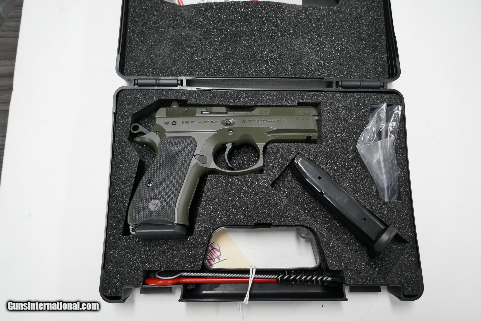 Description: Guns Listing ID: 583892 Hard to find CZ75 SP-01 Compact in OD Green color. Very low round count. Safe Queen. Come with box, booklet and 2 magazines. Manufacturer: CZ Model: 75 SP-01 Caliber Info: 9MM LUGER (9x19 PARA) Condition: Used - Non-Certified Barrels: 4" BARREL Action: SEMI AUTOMATIC Finish: od green Price: $849.99 Contact Seller |