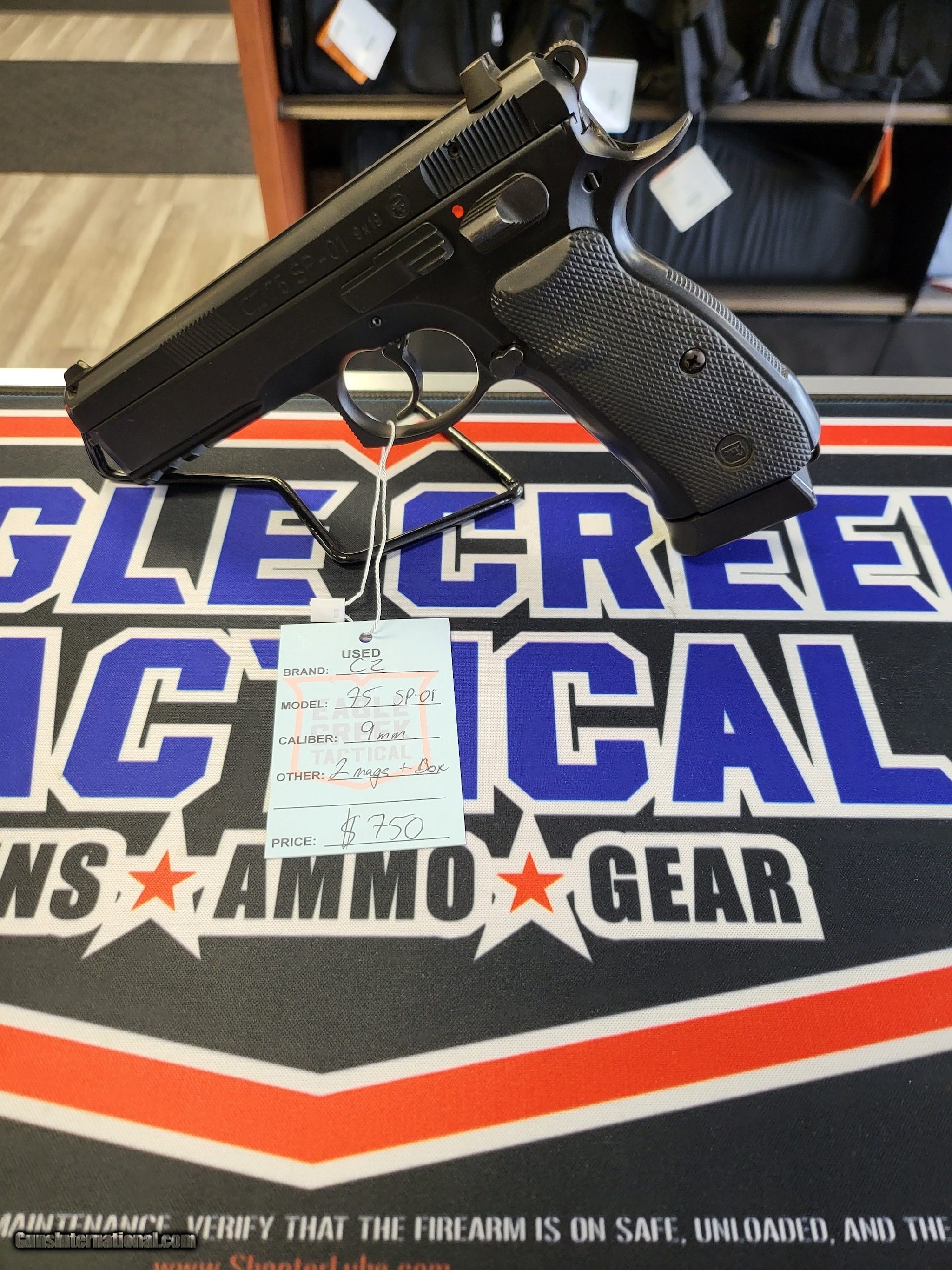 Description: Guns Listing ID: 749901 Used comes with 2 mags and box No Deckocker DA/SA SOLD Manufacturer: CZ Model: 75 SP-01 Caliber Info: 9MM Condition: Used - Non-Certified Barrels: 4.6 BARREL |