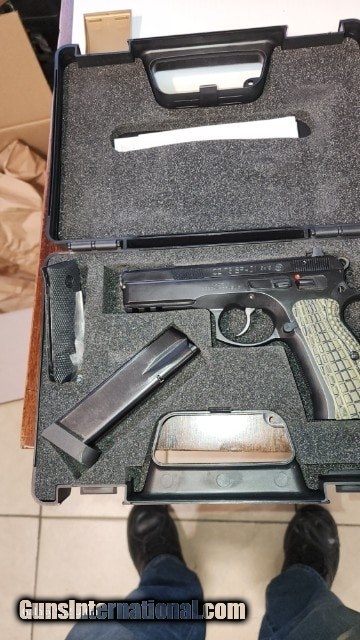 Description: Guns Listing ID: 760509 This pistol is lightly used, less than 100 rounds thru it. A beautiful pistol with CZ \"Dirty Olive\" grips. The original grips are included. This pistol is in the original box and all original paperwork. Includes one 18 round magazine Description From CZ The CZ 75 SP-01 is the first full size handgun (4.6” bbl) from CZ to feature the improved manufacturing technology and ergonomics of the NATO-approved CZ 75 Compact P-01 model. Featuring an integral 1913 accessory rail on the dust cover, rubber grip panels, and CZ’s corrosion resistant black polycoat finish, the SP-01 is the newest model to join the family of pistols based on the CZ 75 (SA/DA) platform. Borrowing from the improved grip geometry of the compact P-01, the SP-01 utilizes an extended beavertail to protect shooter’s strong hand as well as allowing for a deeper and more secure grip. The new grip geometry, checkering in key areas on the front and back straps, and redistribution of mass provided by the accessory rail noticeably decrease the perceived recoil from previous models and allows for more rapid target acquisition and transition. The SP-01 was designed as a military and law enforcement duty sidearm. The new model is currently in use by security forces fighting the war on terrorism. Thanks to its exceptional accuracy and superior handling characteristics, the CZ 75 SP-01 has also found supporters in the field of sport and target shooting. Its list of users on the competition circuit include World Champions Adam Tyc and Angus Hobdell (1st and 3rd place respectively in 2005‘s IPSC championship, World Shoot XIV). SOLD Manufacturer: CZ Model: 75 SP-01 Caliber Info: 9MM LUGER (9X19 PARA) Condition: Used - Non-Certified Barrels: 4.6 BARREL Finish: BLACK |