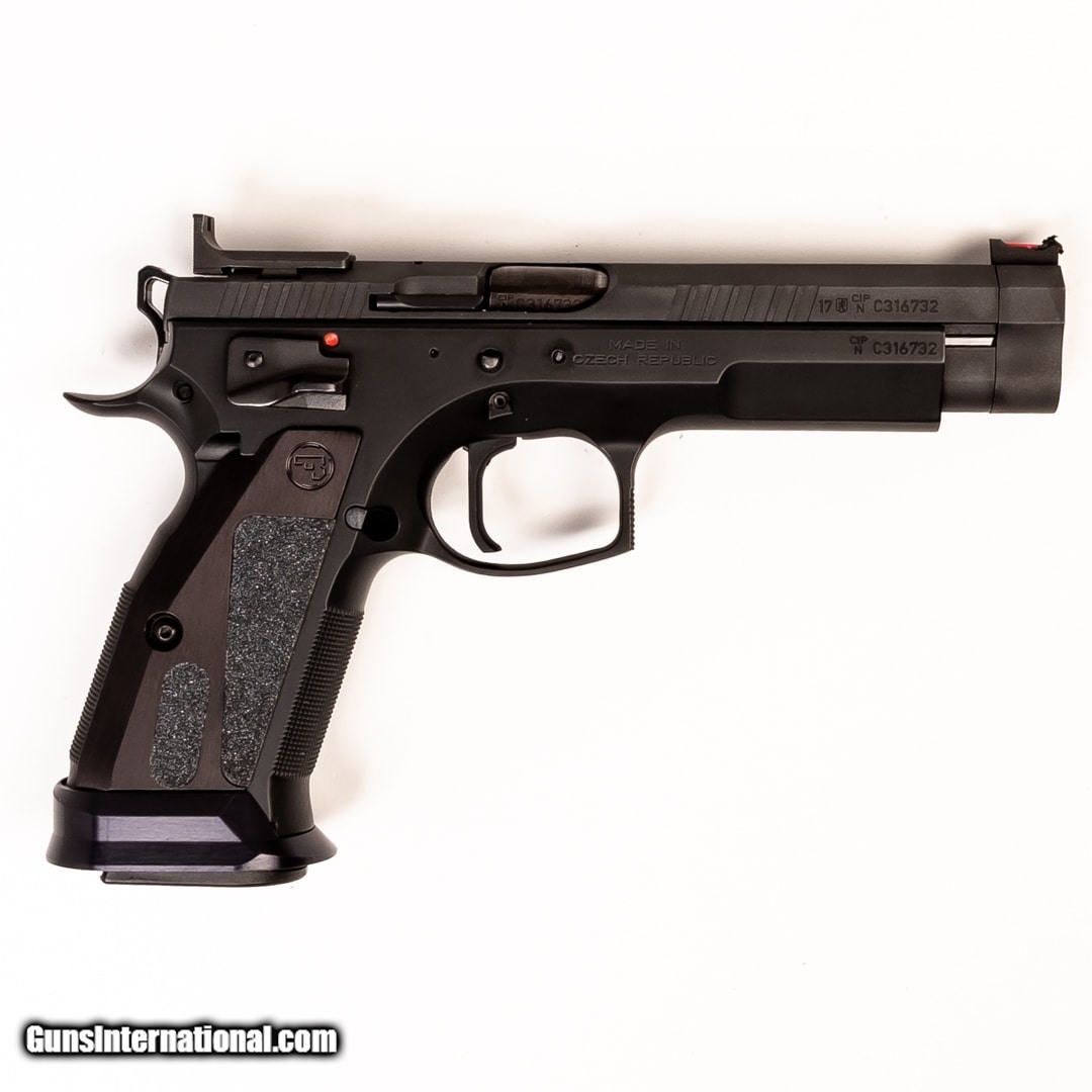 Description: Guns Listing ID: 528256 Offered for sale is a CZ 75 TS Czechmate. It‚‚s a tactical sport special inspired by the fine-tuned, custom guns of elite shooters in the IPSC Open Division. All components are masterfully machined and matched, broken in, and tested. Rest assured, the 75 TS Czechmate is ready to perform! This model is equipped with a C-More optic. Purchase includes three 20-round magazines, one 26-round magazine, a second set of CZ green grips, a second 5\" threaded barrel, a second compensator, and an optic mount with parts and tools SOLD Manufacturer: CZ Model: 75 TS CZECHMATE Caliber Info: 9MM LUGER Condition: Used - Certified Barrels: 5.2 BARREL Finish: BLACK |
