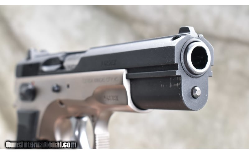 Description: This 75B is in overall very good to excellent condition. Chambered in .40 S&W – a pinnacle of precision and power. This sleek, all-steel handgun seamlessly combines timeless design with modern performance. .40 S&W SOLD Chambers: 10 Round detachable magazine. Metal Condition: Very good with some handle marks and light wear on the high points. Some add'l wear at the end of the slide. See photos for detail. Wood Condition: Excellent. Bore Condition: Shiny with good rifling. Barrels: 4.5 Inches. Triggers: Factory DA/SA action. Butt Pad: Hogue black synthetic grips. Weight: 36 Oz Sights: Front post and fixed rear notch. Item Location: Rogers |
