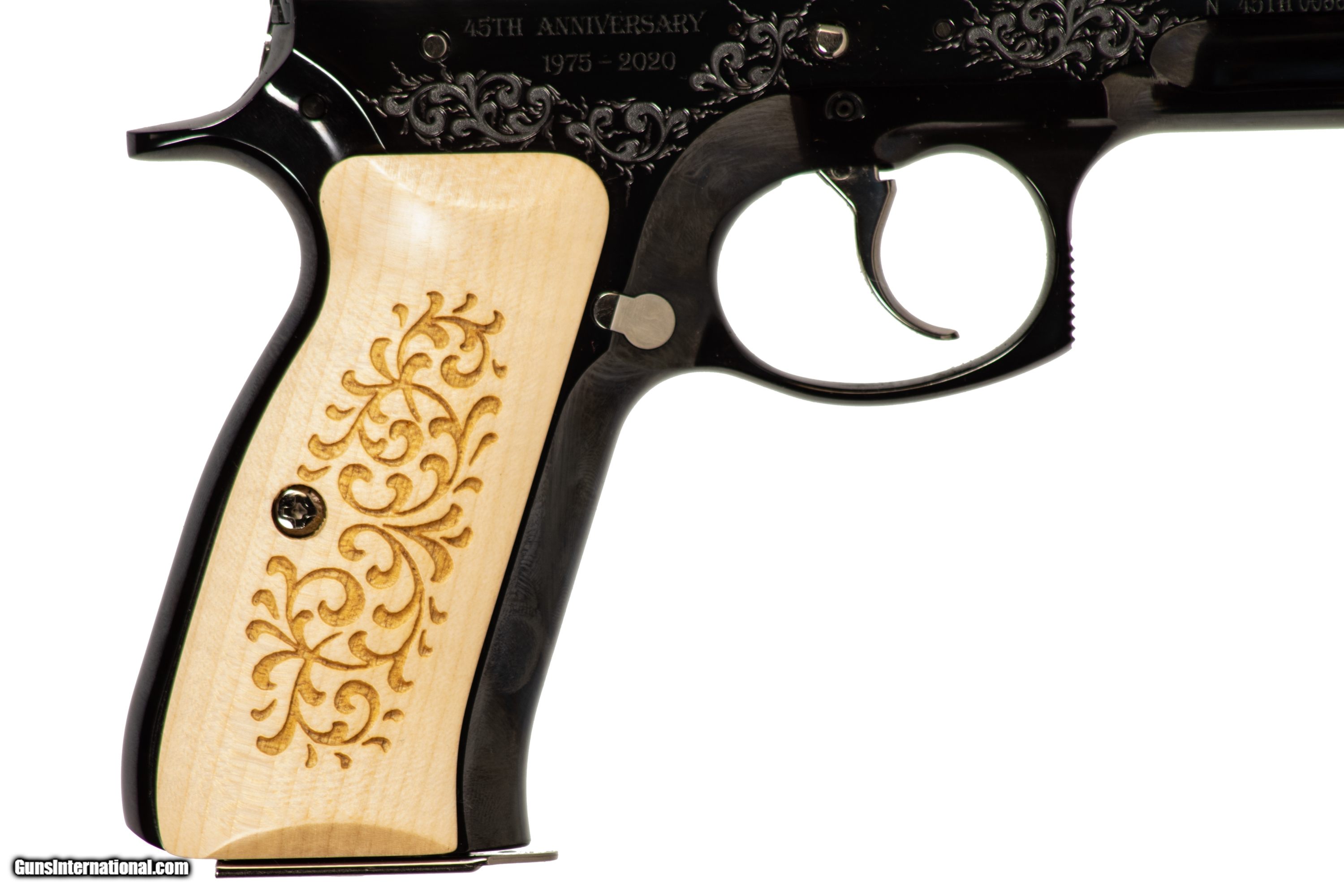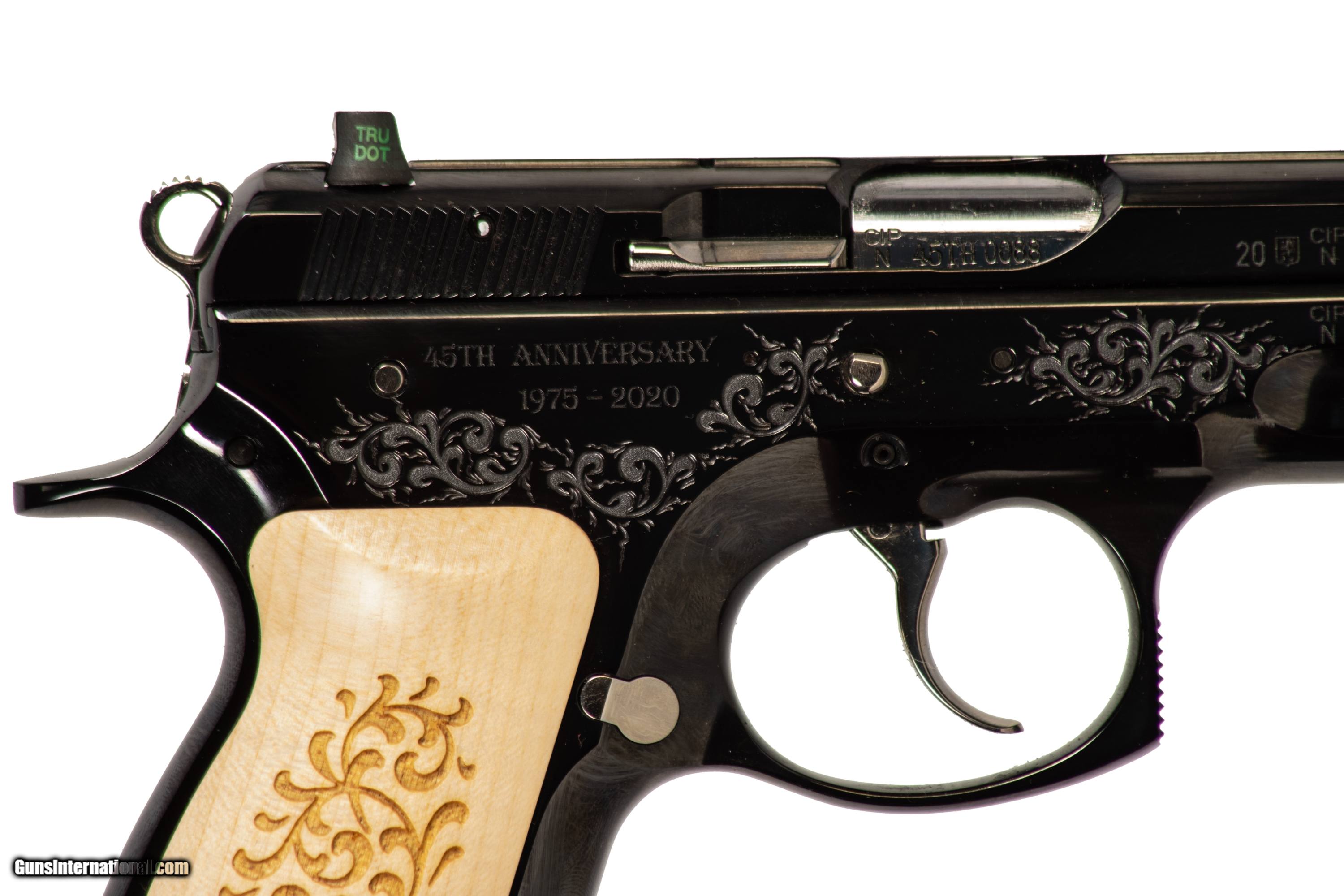 CZ 75B chambered in 9 mm with a 4 1/2 inch barrel and a bright & shiny bore. This firearm comes with a case and 1 extra magazine. This firearm is in excellent condition and is covered by Dury's Lifetime Warranty.