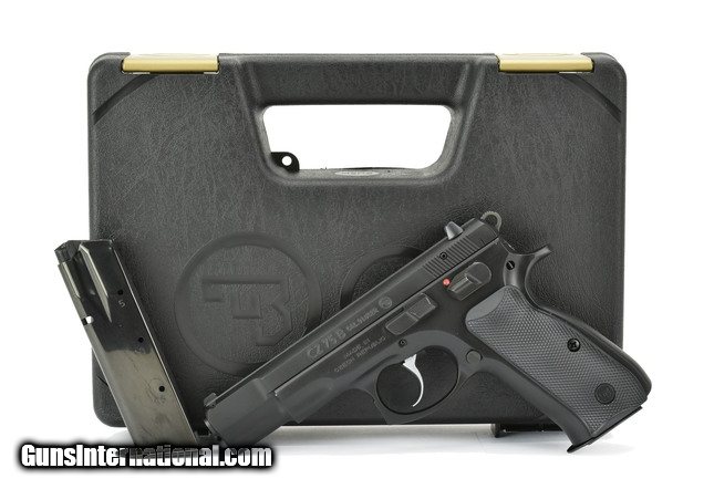 Description: CZ 75B 9mm Luger caliber pistol. Full size model with thumb safety and extra magazine. New.