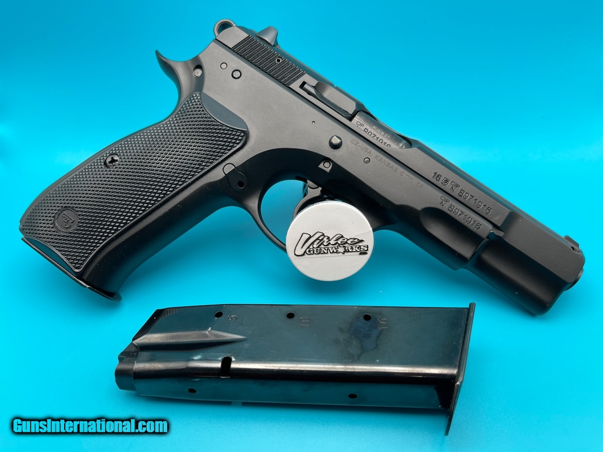 Description: Guns Listing ID: 655169 Pistol is in excellent shape and was shot very little. Included is the factory hard case and two magazines. SOLD Manufacturer: CZ Model: 75B Caliber Info: 9MM LUGER Condition: Used - Non-Certified Barrels: 4.5 BARREL Finish: BLUED |