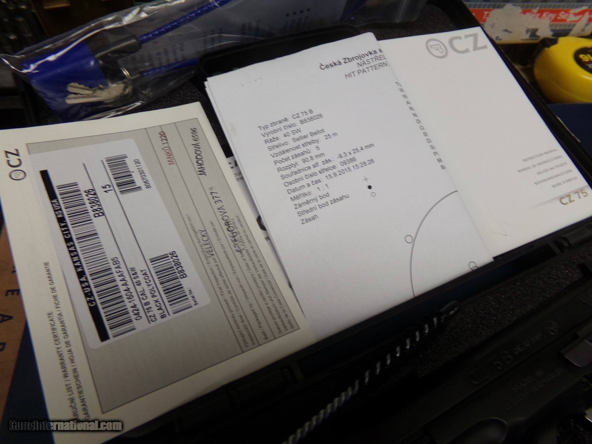 Description: Guns Listing ID: 762100 CZ 75B 40 S&W semi-auto pistol...in original case with all papers and two factory 10 round magazines...as new condition! SOLD Manufacturer: CZ Model: 75B Caliber Info: 40 S&W Condition: Used - Non-Certified Barrels: 4 BARREL Finish: BLACK |