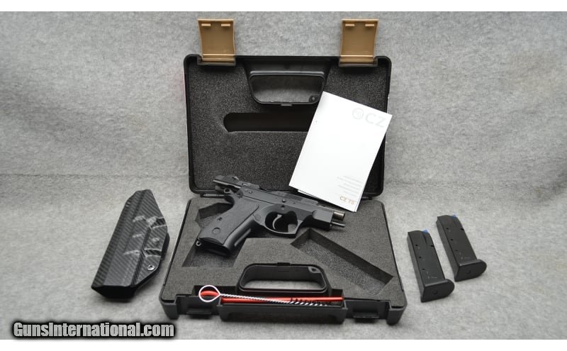 Description: Based on the full-size Model 75 military sidearm, the CZ 75 Compact Semi-Auto Pistol delivers reliable operation in a smaller, lighter handgun for concealed carry use. The 75 Compact features a steel alloy frame, and a slightly shorter barrel and frame. The pistol's excellent ergonomics provides unsurpassed ease of handling. The 75 utilizes a double/single-action, hammer-fired mechanism, with tilt barrel, short recoil operation. The 75D features a hammer decocker. The slide of the 75 rides inside the rails of the frame rather than over the top, contributing to the low bore axis for reduced recoil and a tighter lockup for enhanced accuracy. 3-dot steel sights acquire quickly, and hard checkered composite grip panels provide a solid hold. This pistol comes with the factory case, two 15 round magazines, a 'We The People' appendix holster, and manual. The gun is in excellent condition overall. 9mm Luger SOLD Metal Condition: Great Bore Condition: Bright Barrels: 3.8 inch Triggers: Double/Single action Weight: 27.2 oz. Sights: 3 dot factory Item Location: Noblesville, IN |