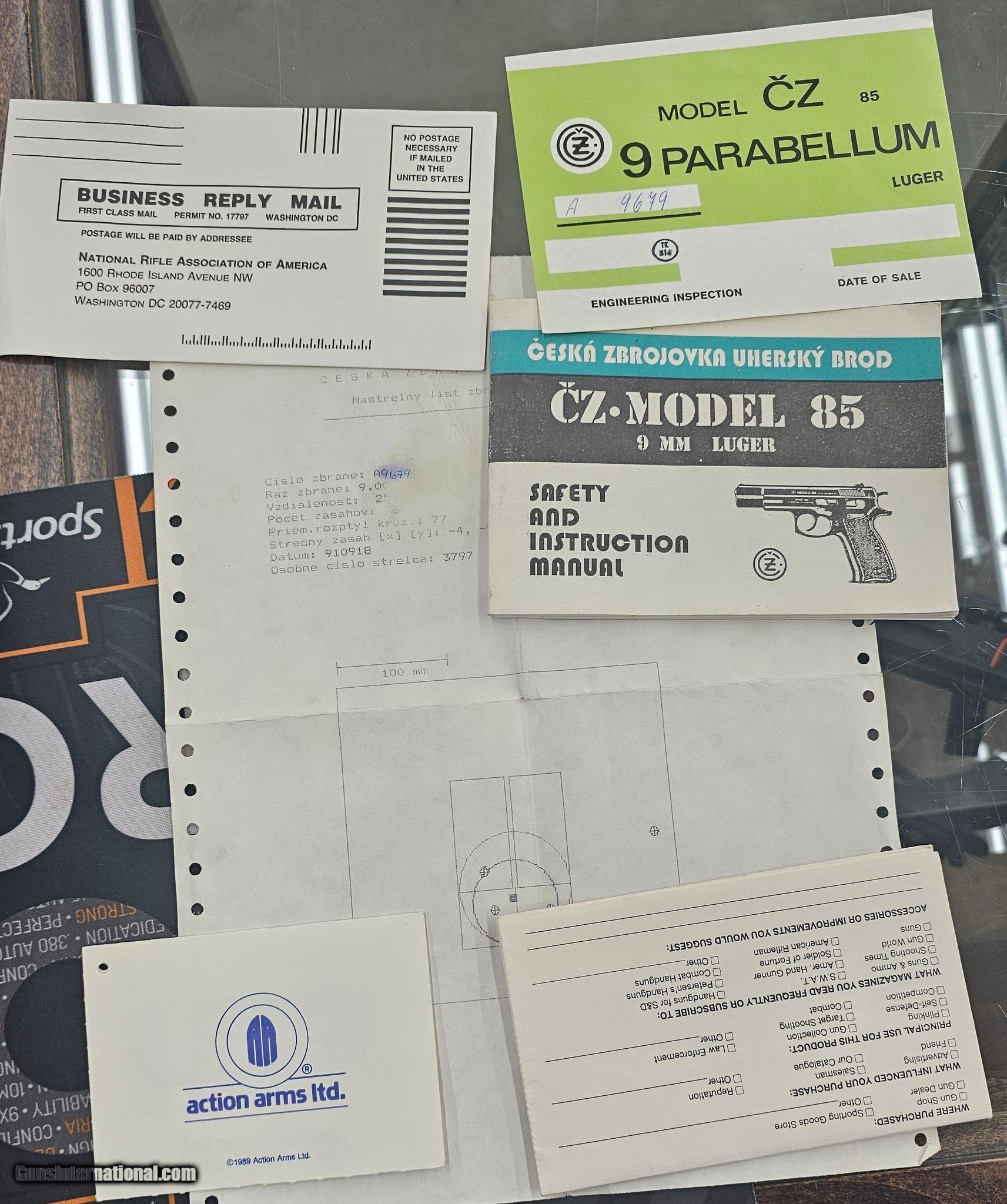 Description: Guns Listing ID: 499054 SPECIAL EDITION CZ MODEL 85 WITH ORIGINAL BOX AND PAPERWORK FROM WHEN THE GUN WAS MANUFACTURED SOLD Manufacturer: CZ Model: 85 Special Edition Caliber Info: 9MM LUGER (9x19 PARA) Condition: Used - Non-Certified Barrels: 4.61 Action: SEMI AUTOMATIC Finish: polished stainless |