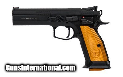 Description: APPEARS NEW IN BOX CZ 91261 75 Tactical Sport Orange Pistol, 9mm, 5.4" Barrel, Single Action Only, Orange Grips, Adjustable Sights, Black Finish, 20+1 Rounds