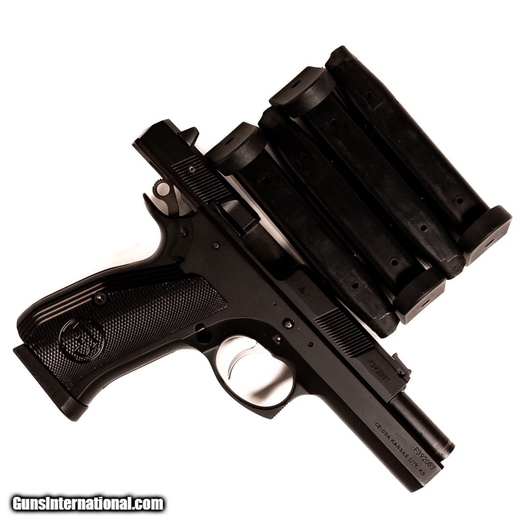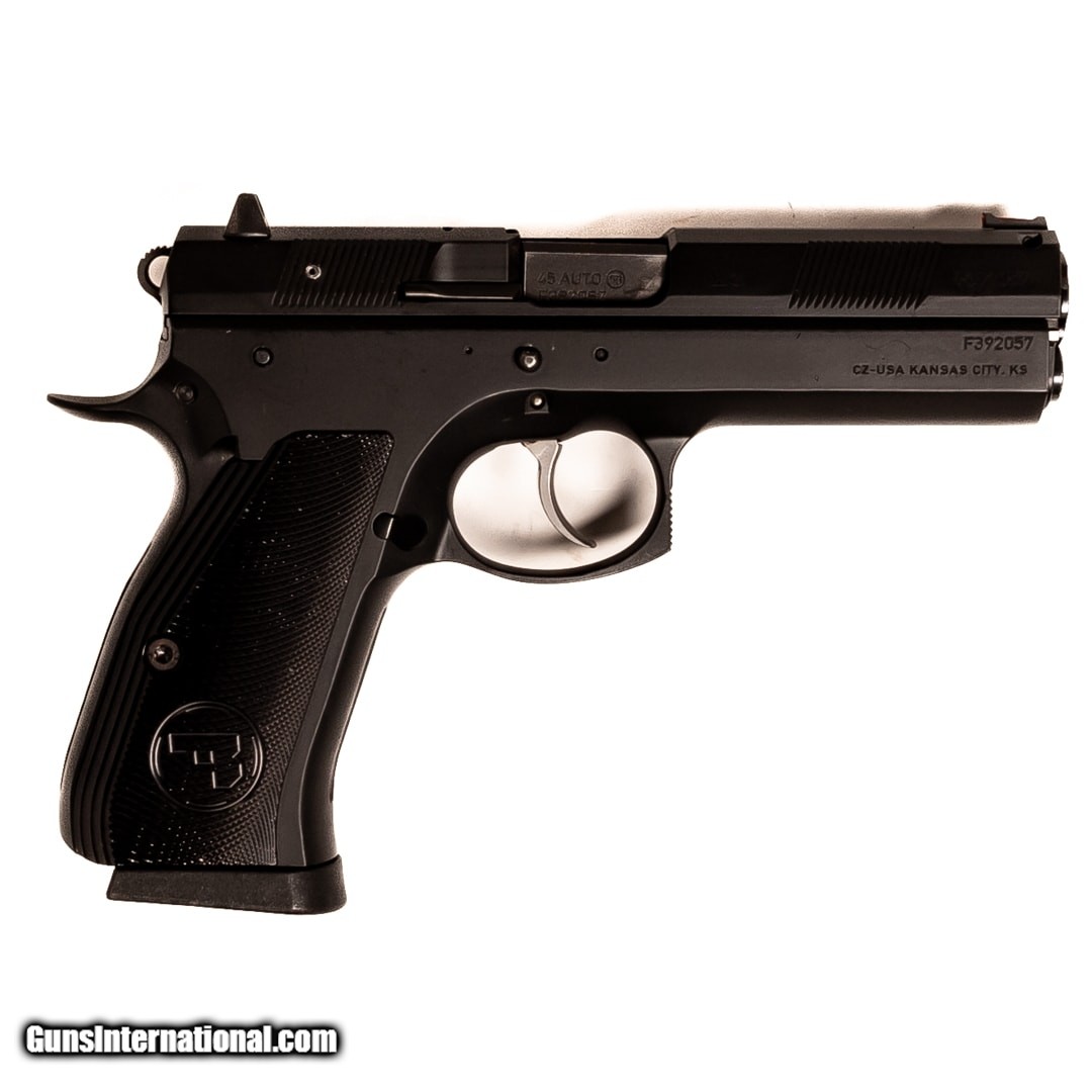 Description: Guns Listing ID: 713632 The CZ 97 B is the big-bore brother to the CZ 75 B, the first CZ pistol produced in .45 ACP. It is operationally identical to the 75 B (SA/DA, firing pin block safety and magazine brake). Features include a screw-in barrel bushing, loaded chamber indicator and a double-stack magazine holding 10 rounds. If you’re in the market for a .45 ACP combat style handgun then the CZ 97 B could be what you’re looking for. Functionally similar to the world-renowned CZ 75, this heavy caliber variant is great for tactical applications, competition, and home-defense. This handgun features five 10-round magazines and includes the original case with the manual. Get the best bang for your buck when you get a Certified Used Firearm . When you see the Certified Used stamp on any of our firearms, you can be confident that you’re getting exactly what you want – a gun only in very good to excellent condition and held to the highest quality standard. All Certified Used Guns come with a ‘no questions asked’ return policy . PLUS, ALL CERTIFIED USED GUNS SHIP FREE! SOLD Manufacturer: CZ Model: 97 B Caliber Info: .45 ACP Condition: Used - Certified Barrels: 4.6 BARREL Finish: BLACK |